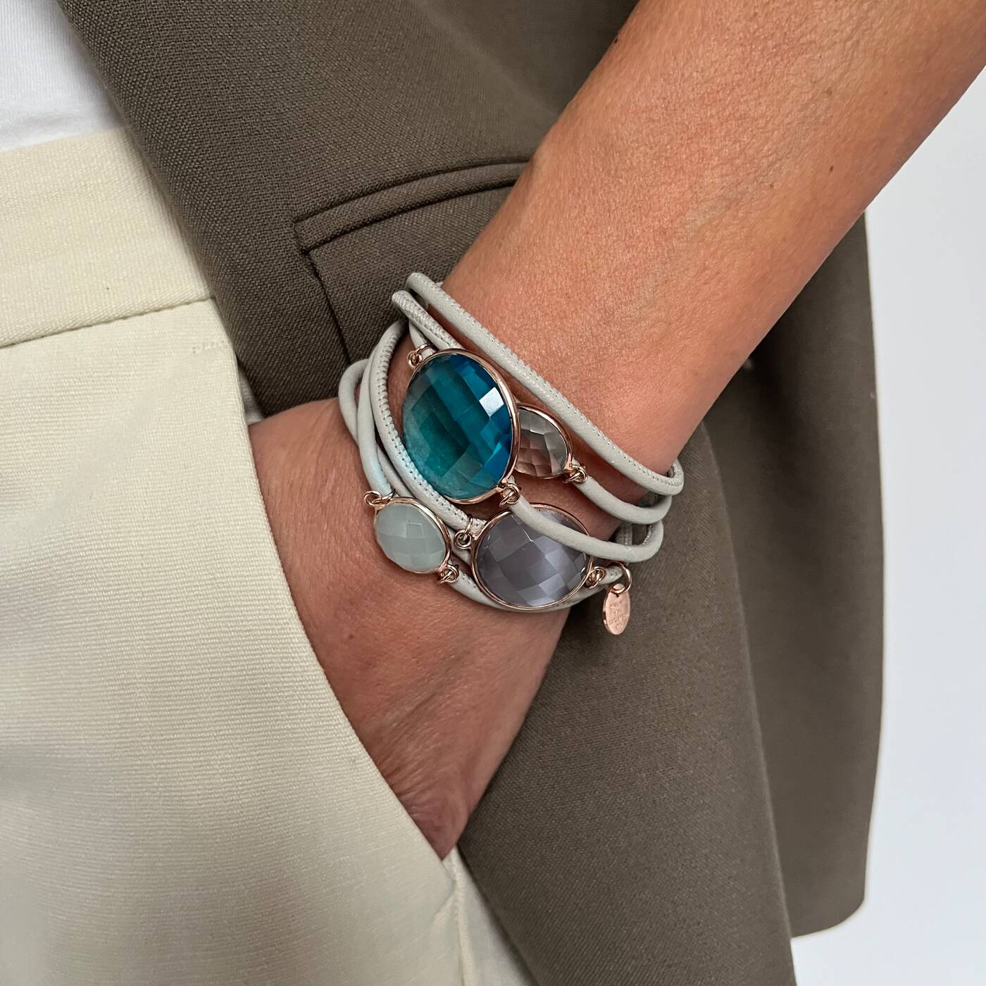 - Edelsteine: Blauer Topaz, grauer Mondstein, blauer Chalzedon