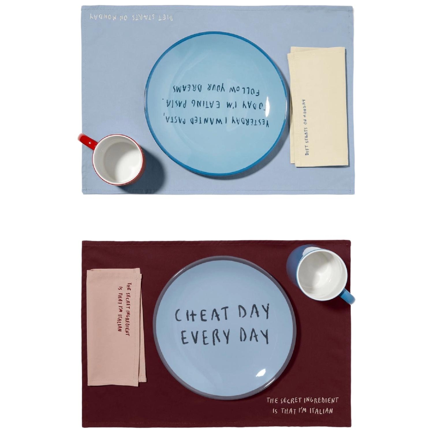 •  Set aus zwei Tischsets und Servietten