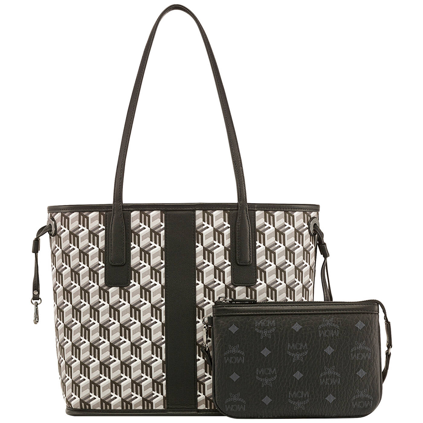 Herausnehmbare Pouch in Visetos mit Reißverschluss und Schulterriemen aus Leder