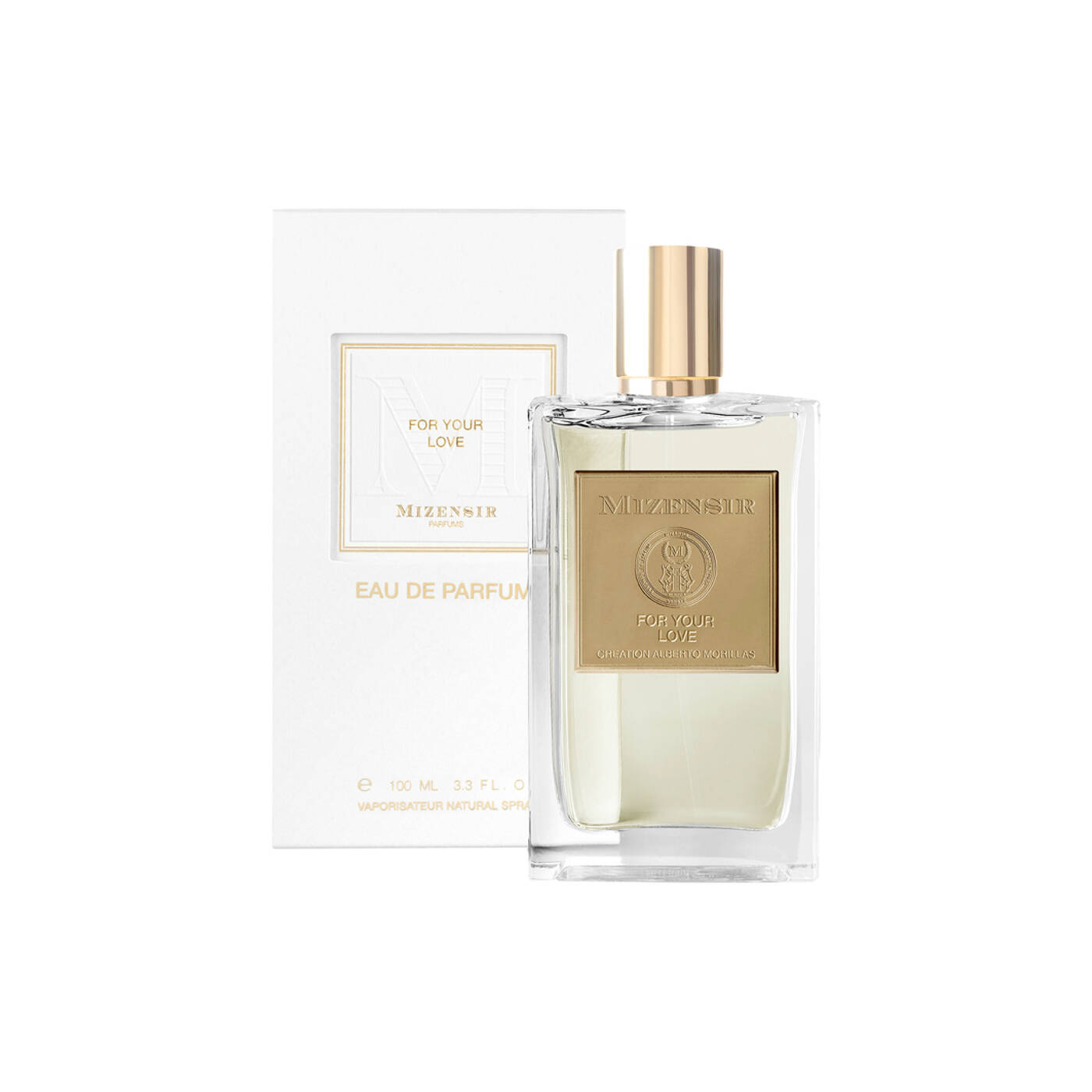 FOR YOUR LOVE entstand aus einer Parfümeur-Wette: den Duft eines Kusses zu simulieren. All die olfaktorischen Empfindungen, die man in einem Bruchteil einer Sekunde erleben kann, wenn man sich dem anderen nähert. Die beruhigende Intimität der Haut, die Moschuswärme vom Hals bis zum Haaransatz und der fruchtig-pudrige Duft des Lippenstifts. Die Himbeernote, die an die Schminke erinnert, der warm duftende Moschus und Cachalox ®, deren Sinnlichkeit dem Ambergris so nahe kommt. Für die zarte Haut, die sich nach einer Liebkosung sehnt, bringen Benzoe und das Herz von Patchouli ihre Tiefe und Sanftheit mit. Einst parfümierte man sich mit Moschus, wenn man jemanden zu einer Liebelei einladen wollte. Der elegante Glasflakon von For Your Love trägt eine goldene Verschlusskappe und zeichnet sich damit als Teil der Mizensir Duftkollektion aus, die durch wärmere und weiche Nuancen geprägt ist. Das hochwertige Duftetui hat eine tiefe Prägung, dezente goldfarbene Komponenten und ist mit der Signatur des Meisterparfumeurs verziert.