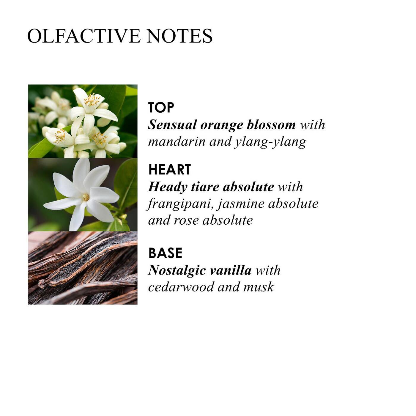 das durch Noten von Orangenblüten, polynesischer Frangipani und Vanille