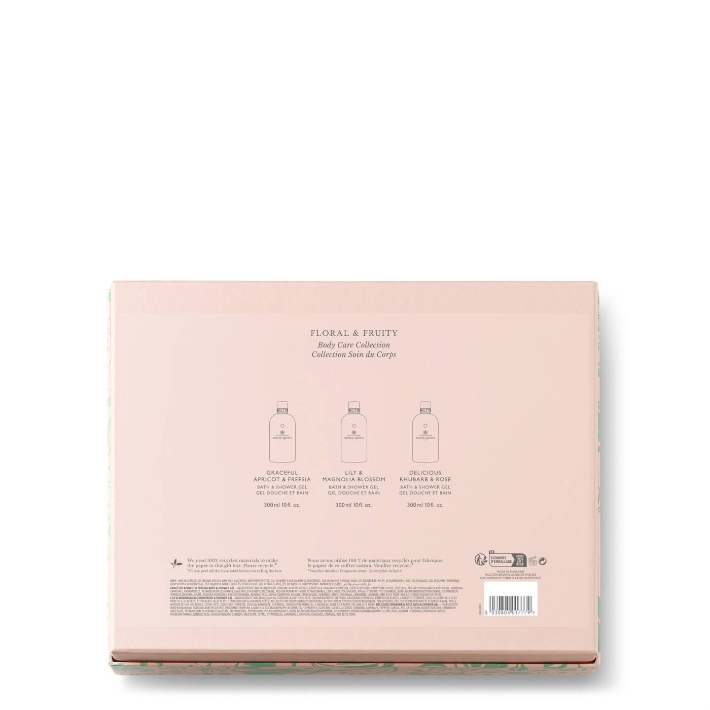 Verleihen Sie den Baderitualen Ihrer Liebsten im Frühling mit unserem Trio aus bezaubernden Bade- und Duschgels einen erfrischenden neuen Touch. Eine üppig duftende blühende Blumenwiese, angereichert mit Kopfnoten von süßer Aprikose, frischem Maiglöckchen und spritzigem Rhabarber.