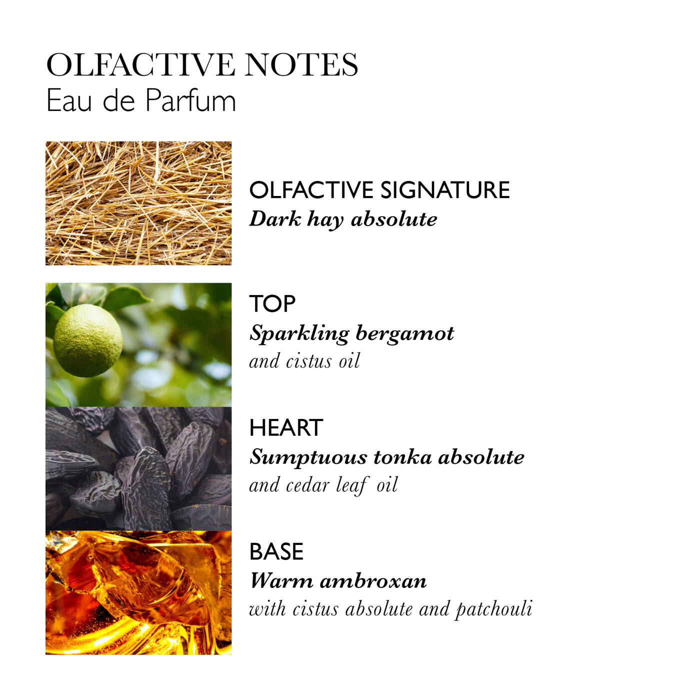 Eine Basisnote aus warmem Ambroxan, Zistrosen Absolue und Patchouli.