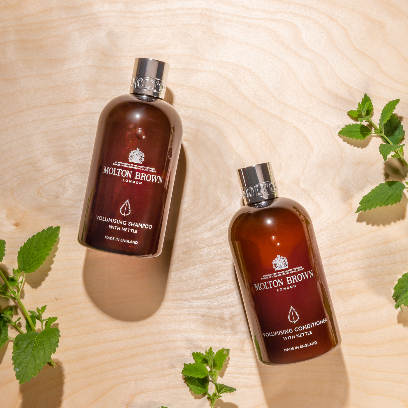 Nach dem Waschen unser Volumising Shampoo With Nettle in das feuchte Haar einmassieren.