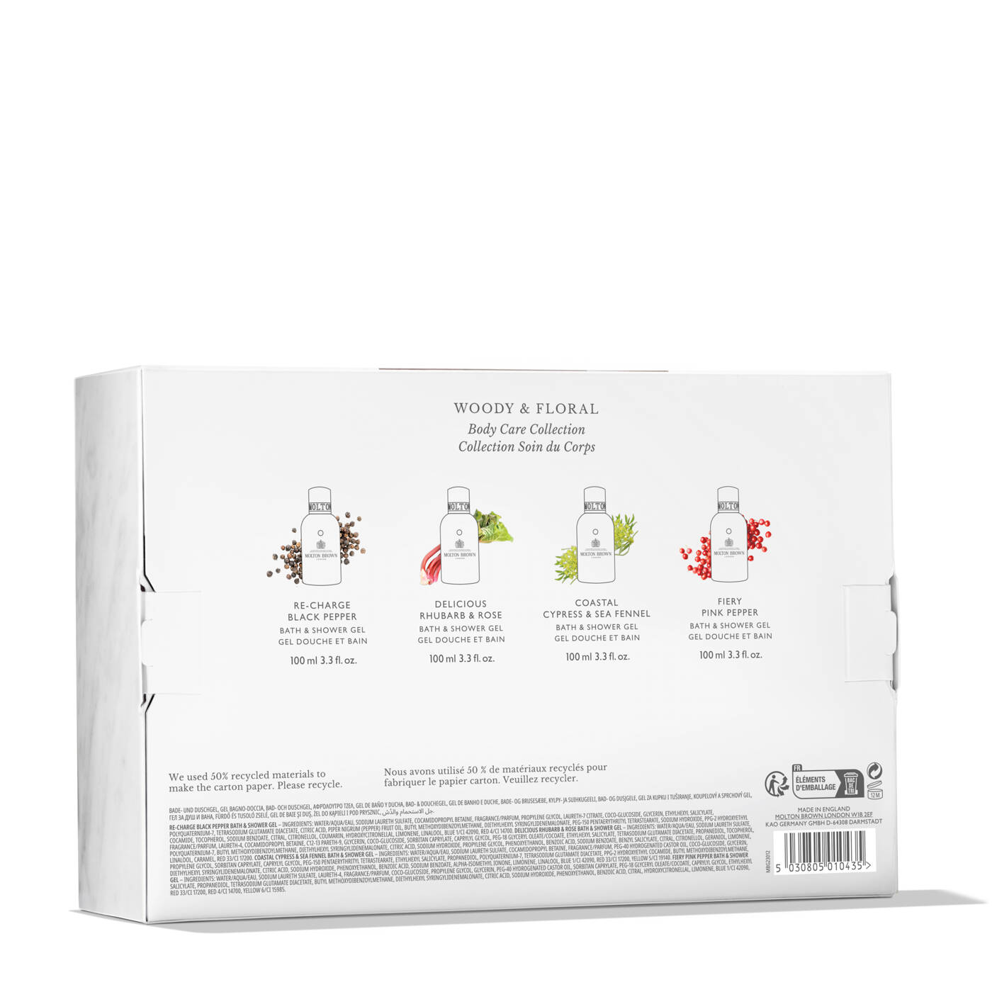 Unser vierteiliges Luxuriöses Reiseset enthält erfrischende und beruhigende Bade- und Duschgels, die Ihre tägliche Routine verfeinern, Ihre Haut gründlich reinigen und einen belebenden Duft hinterlassen.
