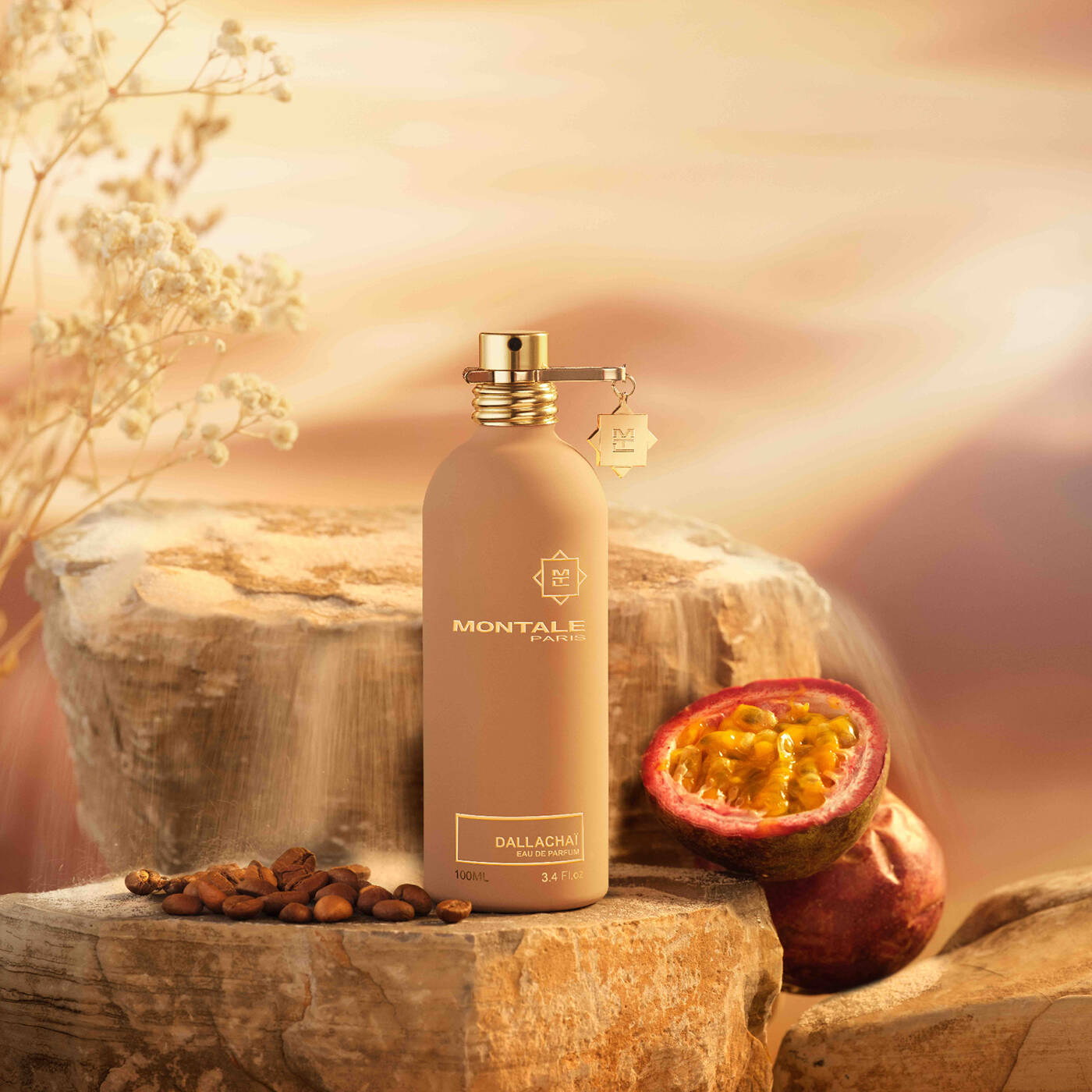 Tradition modern interpretiert. Dallachaï startet mit einem Gewürz-Feuerwerk aus Kardamom und Nelke. Im Herzen strahlen saftige Noten von Passionsfrucht, die einen wundervollen Kontrast darstellen. Arabischer Kaffee ist die Seele des Parfums: der zarte, blond geröstete Kaffee wird durch einen Hauch von Milch gemildert und erinnert an die sanfte Behaglichkeit eines Dallahs mit frisch gebrühtem Kaffee. Intensiver Amber kreiert eine faszinierende Tiefe, während weicher Moschus dem Duft eine seidig, luftige Note verleiht und eine unvergessliche, zarte Sillage hinterlässt.