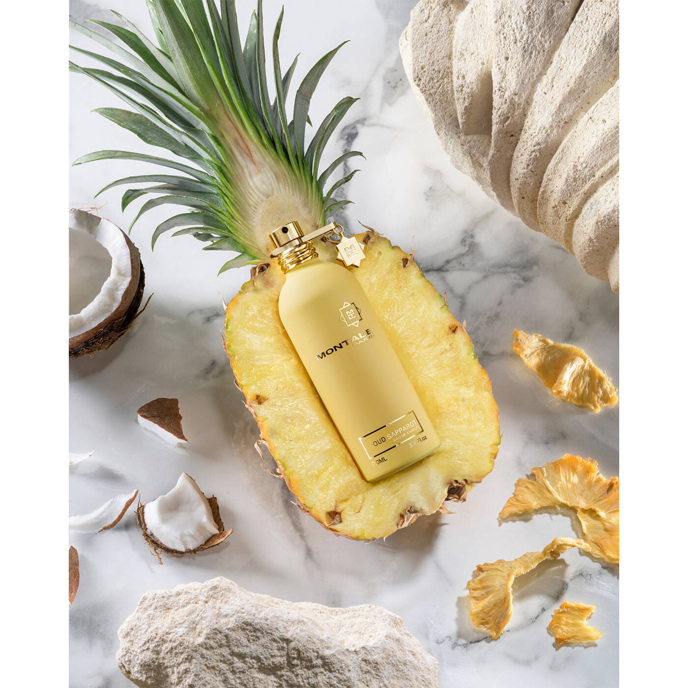 Unerwartete Kontraste: eine fruchtig-cremige und gleichzeitig holzig-ledrige Duftkomposition: Oud Sapparot* (Ananas auf Thaï). Ein Duft, bei dem die sonnige Leuchtkraft der Ananas auf die rauchige Intensität des Ouds trifft. Ein gewagtes Duell der Gegensätze, bei dem tropische Lebensfreude auf orientalische Tiefe trifft... Oud Sapparot ist mehr als nur ein Duft, es ist eine Einladung zum Reisen, um sich in der vibrierenden Energie Thailands zu verlieren, einem Land, das Montale sehr am Herzen liegt. Die Alchemie von Feuer und Frucht: In Thailand ist die Ananas mehr als nur eine Frucht... sie wird von Flammen geküsst und karamellisiert, um ihre rauchige, goldene Intensität zu entfalten. Saftige thailändische Ananas trifft auf die würzige Schärfe von indischem Safran und Ceylon-Zimt, bevor sie mit einem kühnen Herz aus dunklem Leder und rauchiger Silberbirke verschmilzt. In seinem Kern verweilt die tiefe, harzige Seele des kambodschanischen Oud, die durch mexikanische Kokosnuss, süße Vanille und weißen Moschus gemildert wird. Ein sinnliches Flüstern auf sonnengewärmter Haut. Oud Sapparot - wo Feuer die Früchte versüßt und Schatten das Licht umarmen.
