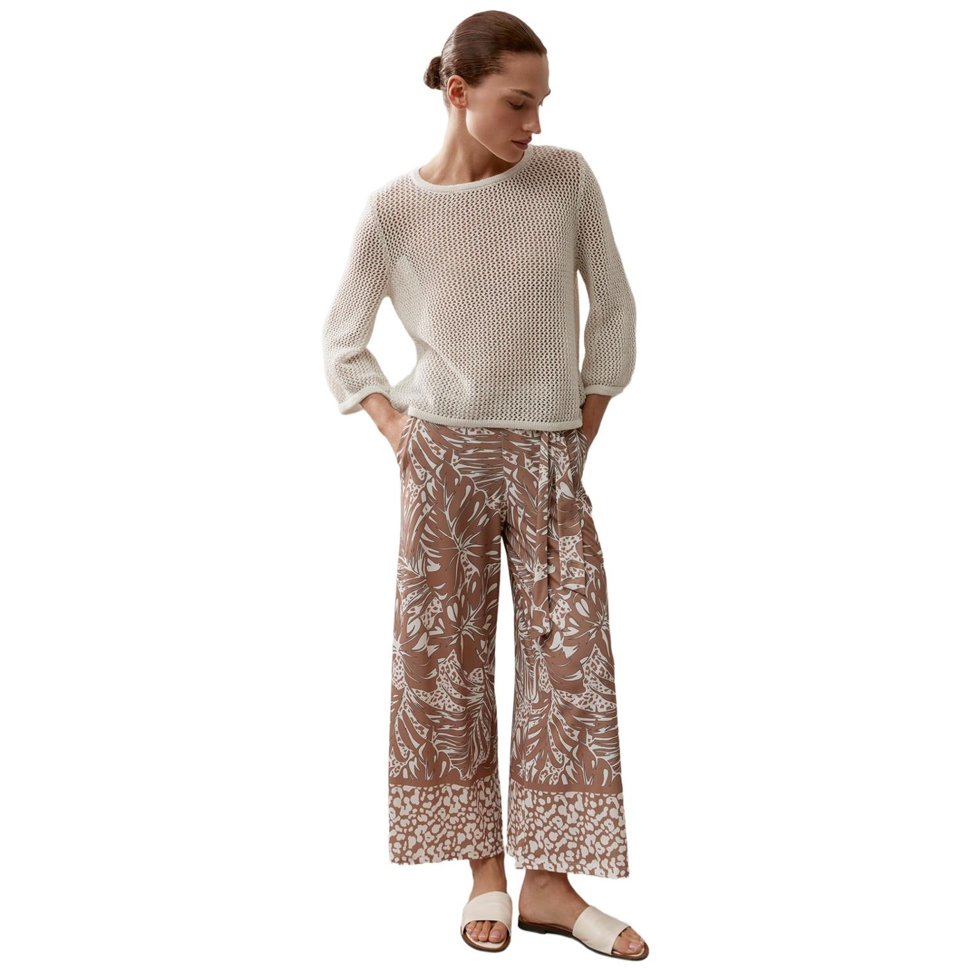 Der sommerliche pullover von more & more begeistert mit luftigem lochstrickmuster und lässt sich easy stylen. der lockere schnitt mit 3/4 langen ärmeln sorgt für eine entspannte silhouette, während der dezente glanzeffekt dem pullover eine feminine note verleiht - perfekt für unkomplizierte everyday-outfits. einfach mit lässiger jeans, weiter culotte oder fließendem satinrock kombinieren und fertig ist ihr neuer lieblingslook.