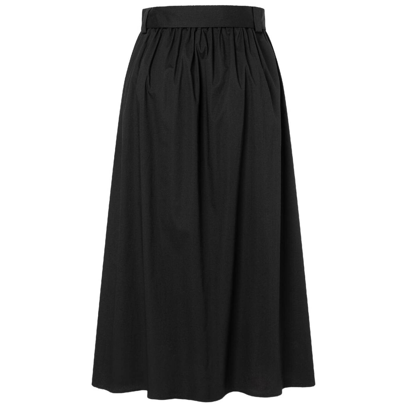 Den weit-ausgestellten baumwollrock von more & more mit breitem bindegürtel und kellerfalten vorne können sie ganz casual mit t-shirt und sneakers stylen oder aber etwas eleganter mit blusentop und heels.