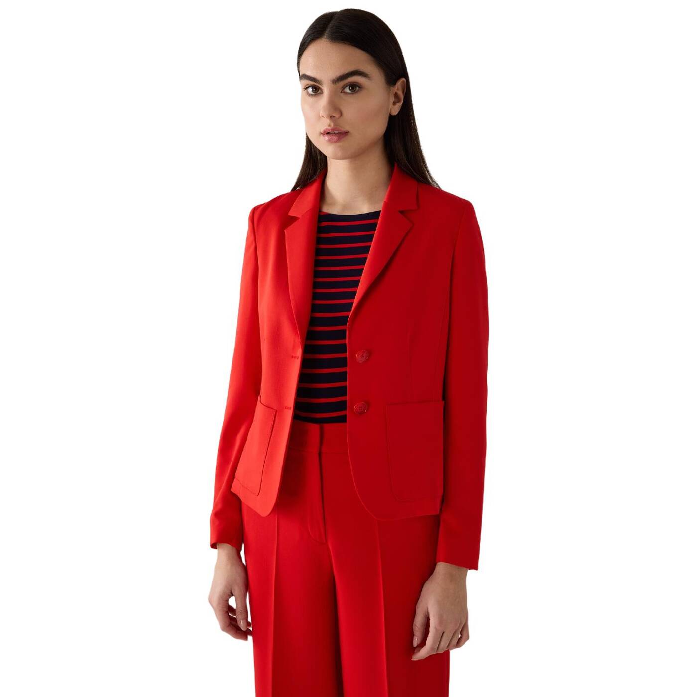 Der rote blazer von more & more wird mit passender hose zum neuen office-look, kann aber auch sehr gut im mix mit jeans und chinos getragen werden.