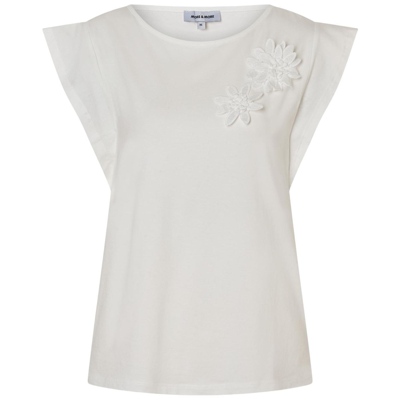 Minimal mit besonderem detail: dieses t-shirt von more & more überzeugt mit cleanem design und femininen 3d-blütenapplikationen als stylischem highlight. der lockere schnitt sorgt für ein entspanntes tragegefühl und einen modernen look. perfekt für easy everyday-styles mit eleganter note.