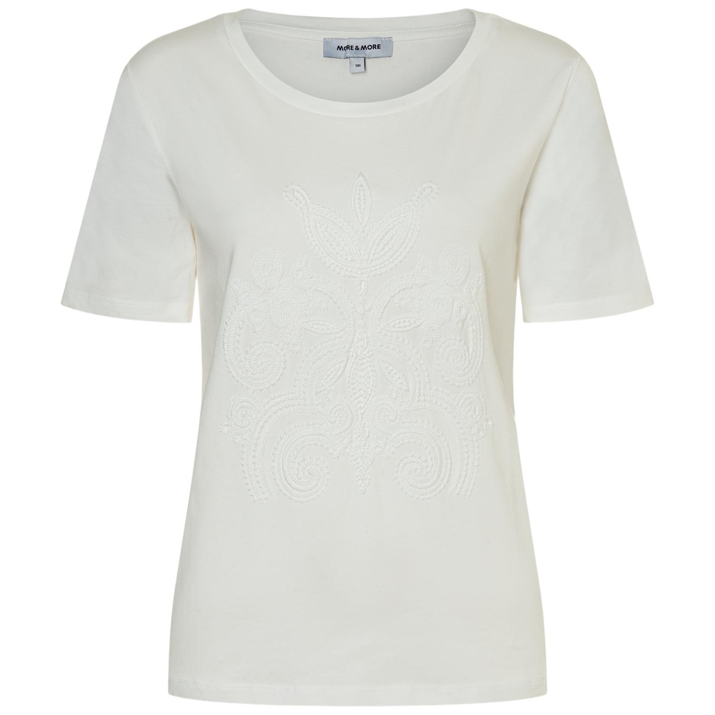 Das moderne kurzarmshirt von more & more begeistert mit edler stickerei auf der front. das zeitlose design bietet unzählige stylingmöglichkeiten und macht es zum vielseitigen begleiter für stilvolle alltagslooks.