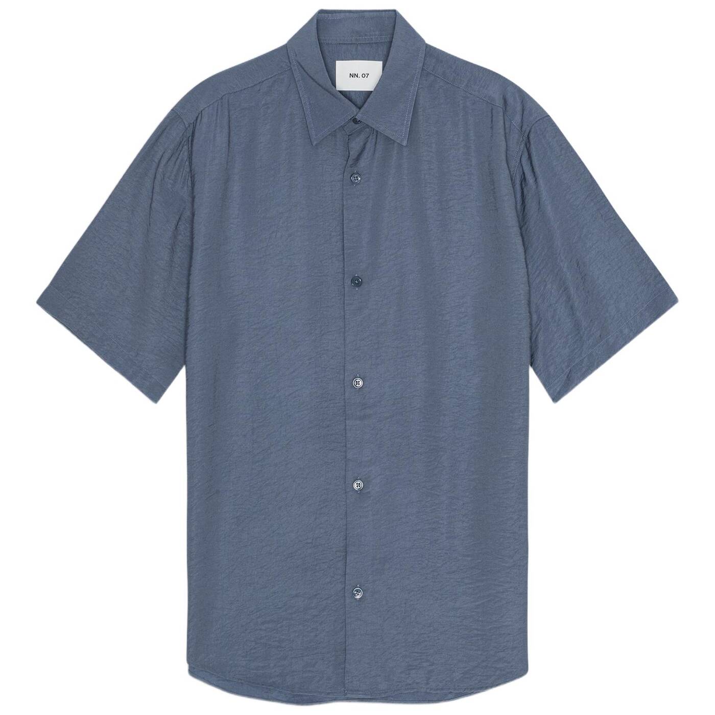 Kurzärmliges Hemd mit klassischem Kragen und Knopfleiste. Der Stoff ist leicht und glatt, das Design schlicht und modern.
