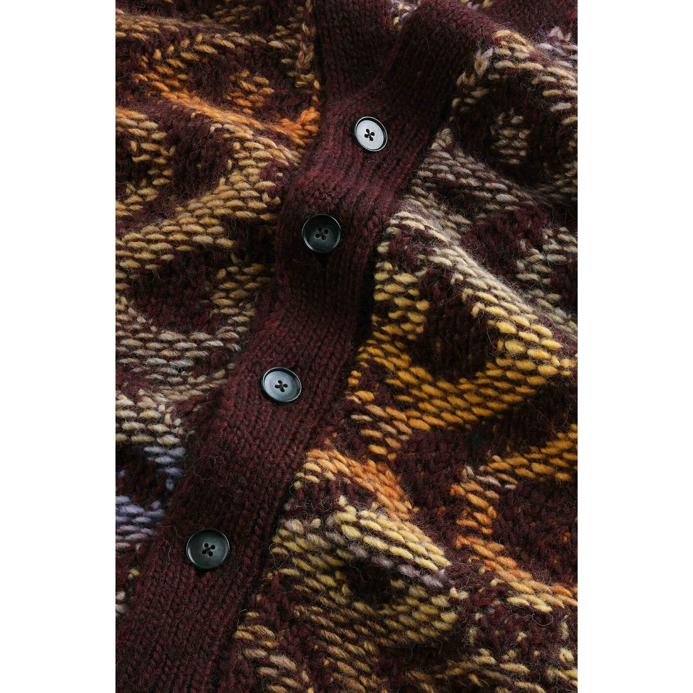 Oversize Strickjacke mit V-Ausschnitt aus italienischer Woll-Alpaka-Mischung, gefertigt in markantem Jacquard-Strick.