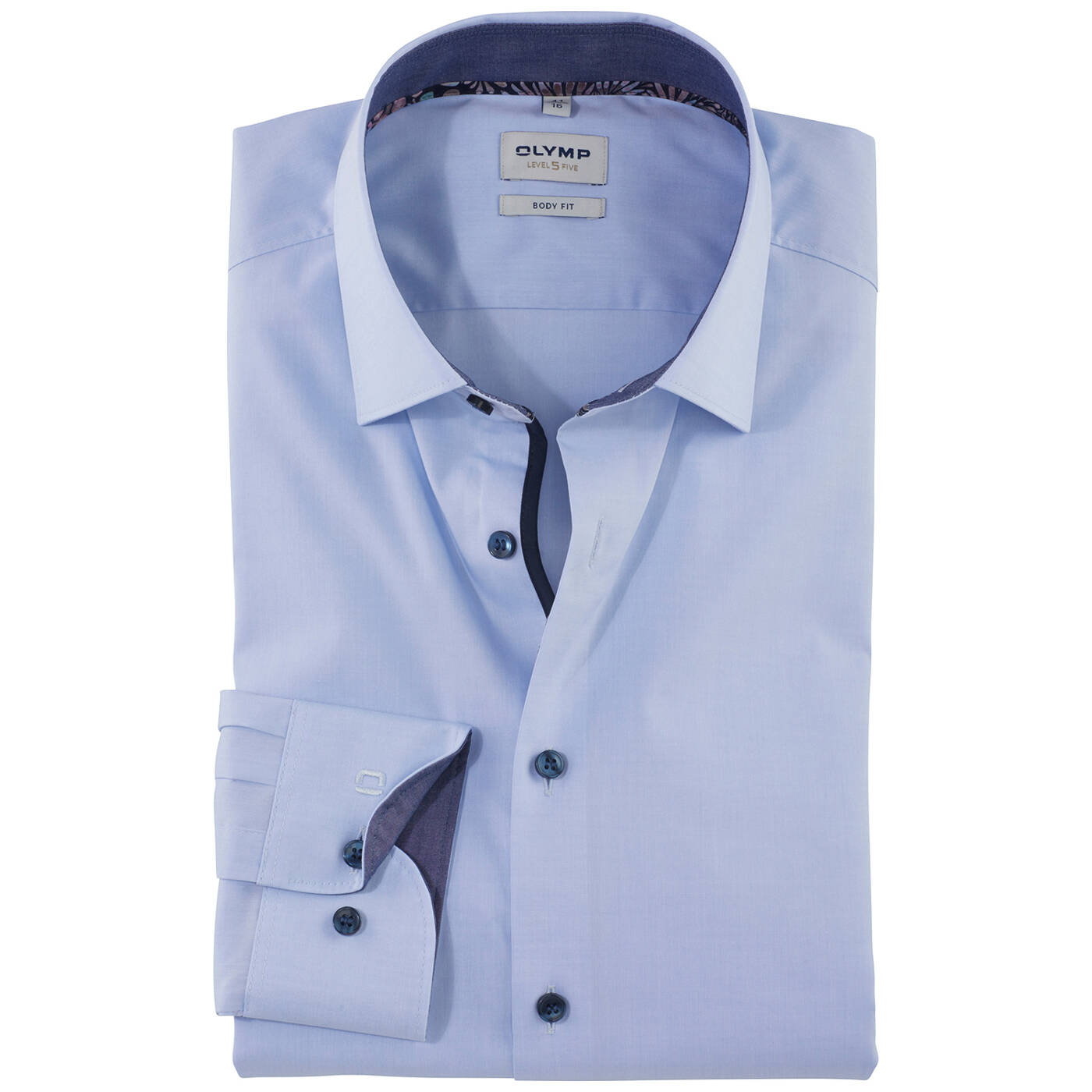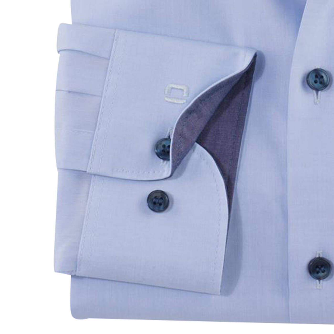 - Unifarben mit Details am Kragen und Manschette