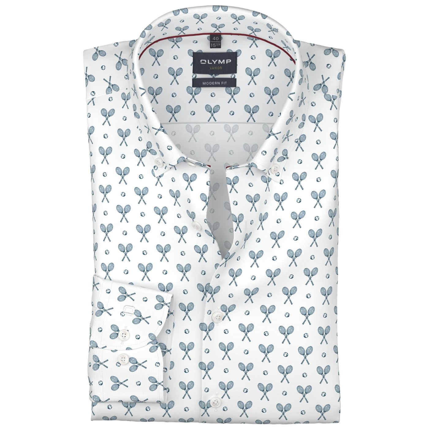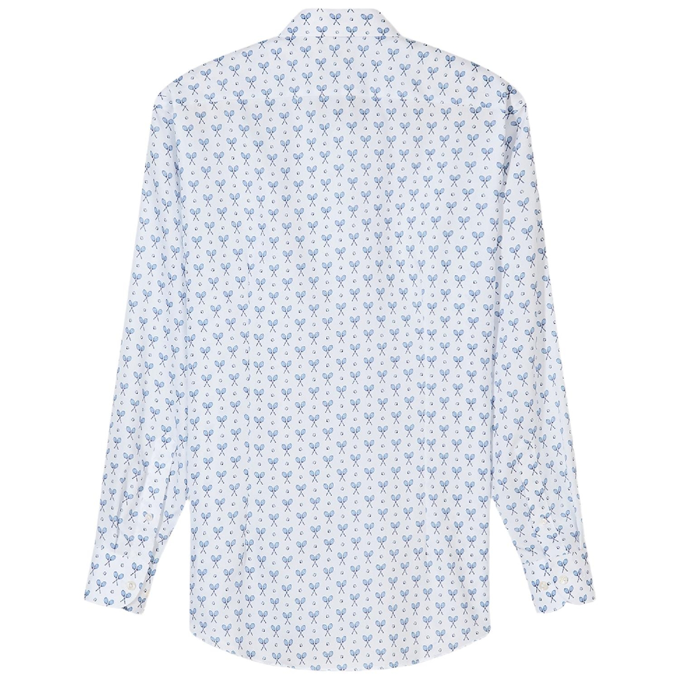 Weißes Hemd aus 100% Baumwolle mit Tennis-Print in Blau. Der Button-Down-Kragen sorgt für einen klaren Abschluss. Wahlweise in comfort fit oder modern fit erhältlich. Weiße Knöpfe fügen sich dezent ins Gesamtbild. Ein markantes Dessin, das unkompliziert wirkt und dennoch auffällt.