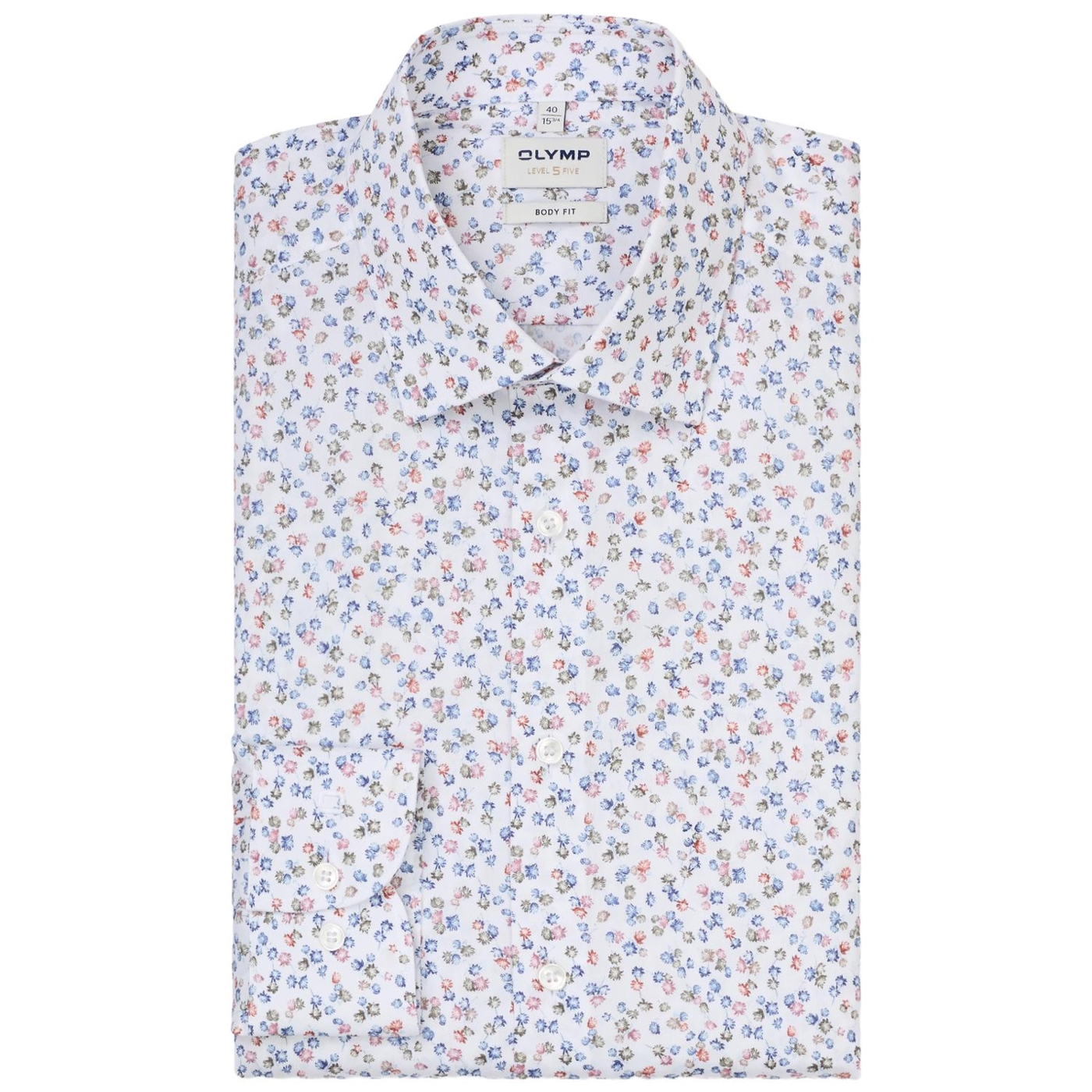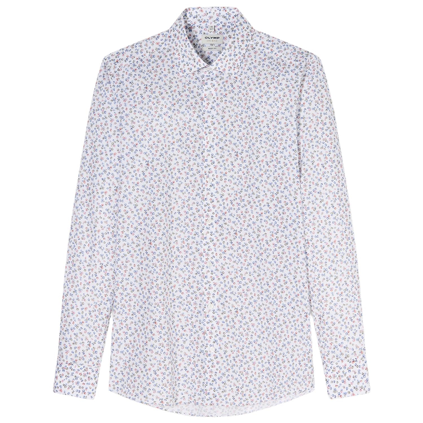 Bedrucktes OLYMP Hemd in Marine und Weiß. Der body fit sitzt körpernah und betont eine schlanke Linie. Die Baumwollqualität mit Stretch-Anteil unterstützt Beweglichkeit und einen stabilen Sitz. Der Stil am Kragen: Kent. Das Print-Dessin setzt einen klaren Akzent und wirkt detailreich hochwertig und gepflegt.