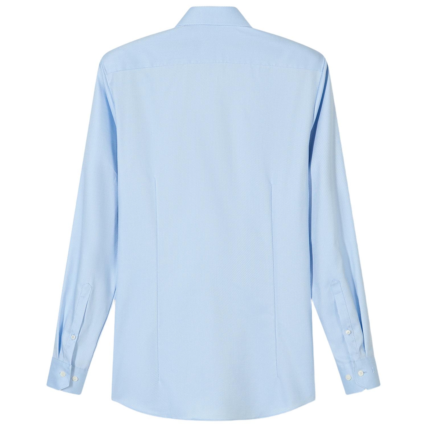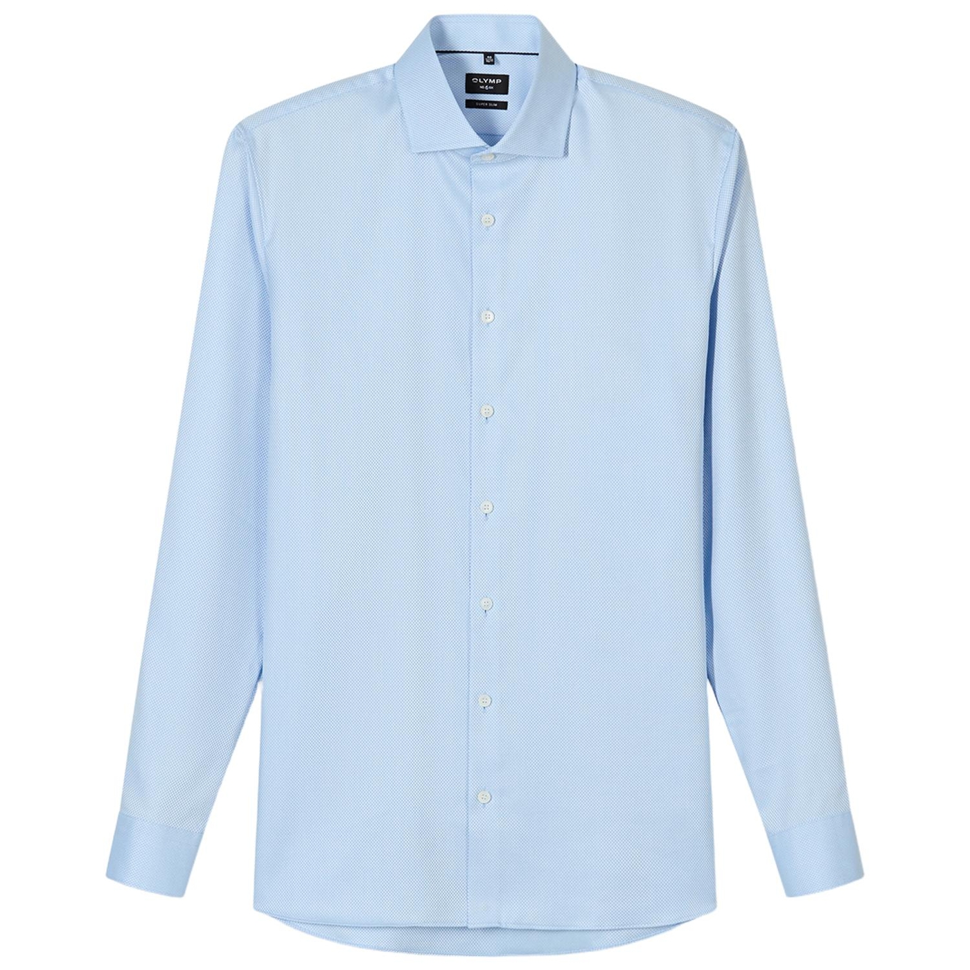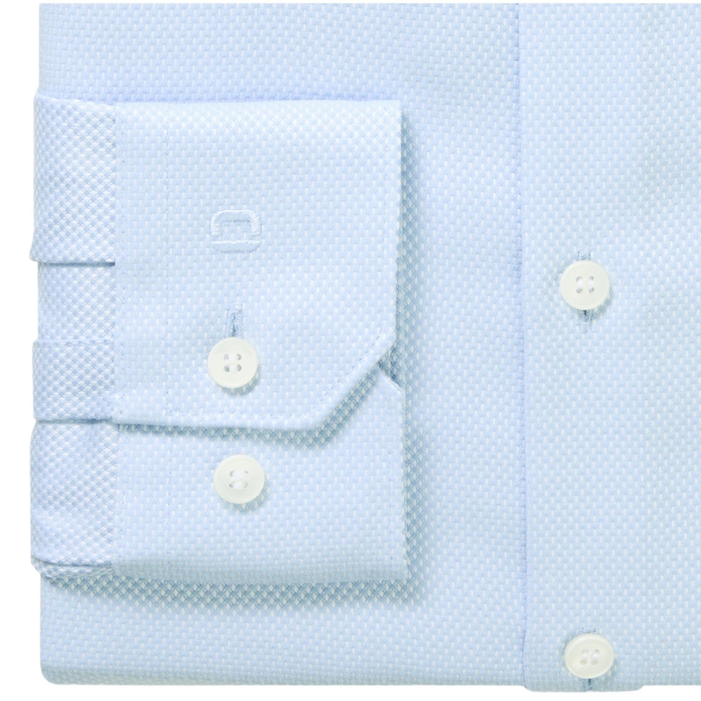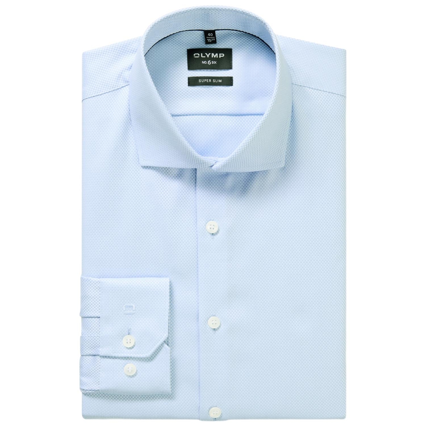 So kommt Individualität in den Look: Die Kombination aus Webeffekt und hellblauem Streifen-Design verleiht diesem eleganten OLYMP No. Six die besondere Note. Gefertigt aus reiner Baumwolle mit tollem Hautkomfort sowie zeitsparender Pflege- und Bügelleichtigkeit. Sportlich-schlanke, taillierte Silhouette, nobler Royal-Kent-Kragen.