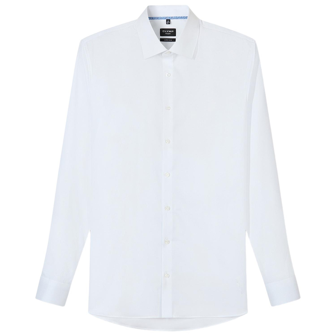 Glattes OLYMP Hemd in Weiß mit Faux-Uni-Dessin. Der Kent-Kragen und die Knopfleiste sind mit Kontrast-Tape, die Manschetten mit Kontrastgewebe ausgestattet. Der Baumwollmix sorgt für ein gepflegtes Erscheinungsbild. Klar im Design, dezent im Detail.