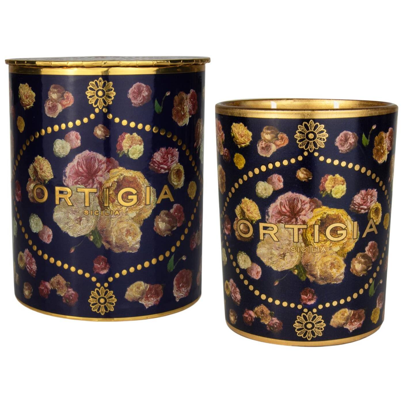 Ein verziertes Glasgefäß mit weißem Wachs, reich an Damaszener- und Alba-Rosenduft.