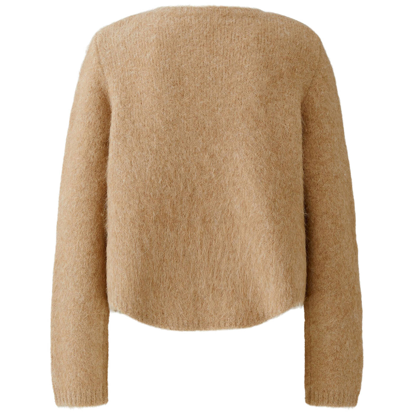 Kuschelige Alpaka Mischung Lässig geschnitten, verkürzte Länge Rundhals mit einem Haken zu verschließen Fransen und Pailletten, auch an den angedeuteten Taschen Dezente Schulterpolster