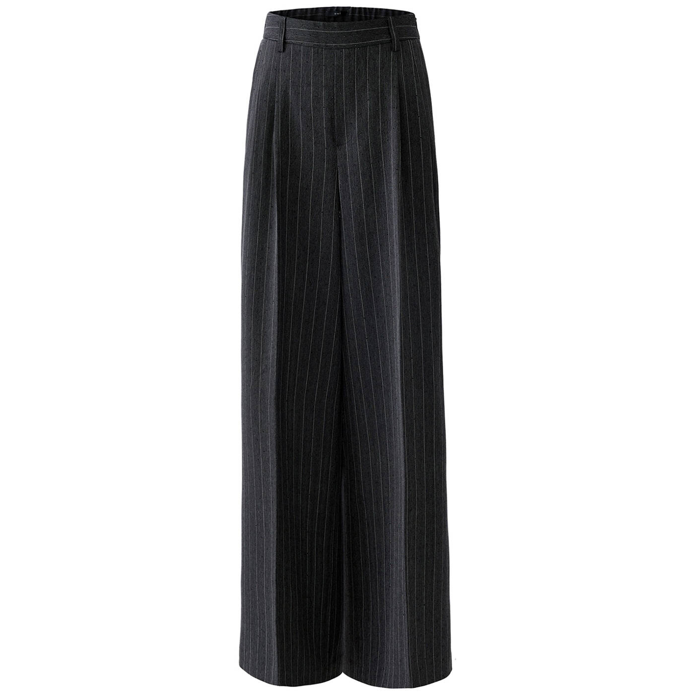 Herringbone plus kontrastige Nadelstreifen allover mit tonigen Glitzersteinen Loose geschnitten, normale Länge, Mid Rise Teildehnbund hinten, mit Gürtelschlaufen und seitlichem, nahtfeinem Reißverschluss Seitliche Eingrifftaschen, angedeutete Gesäßtaschen Streckende Bundfalte