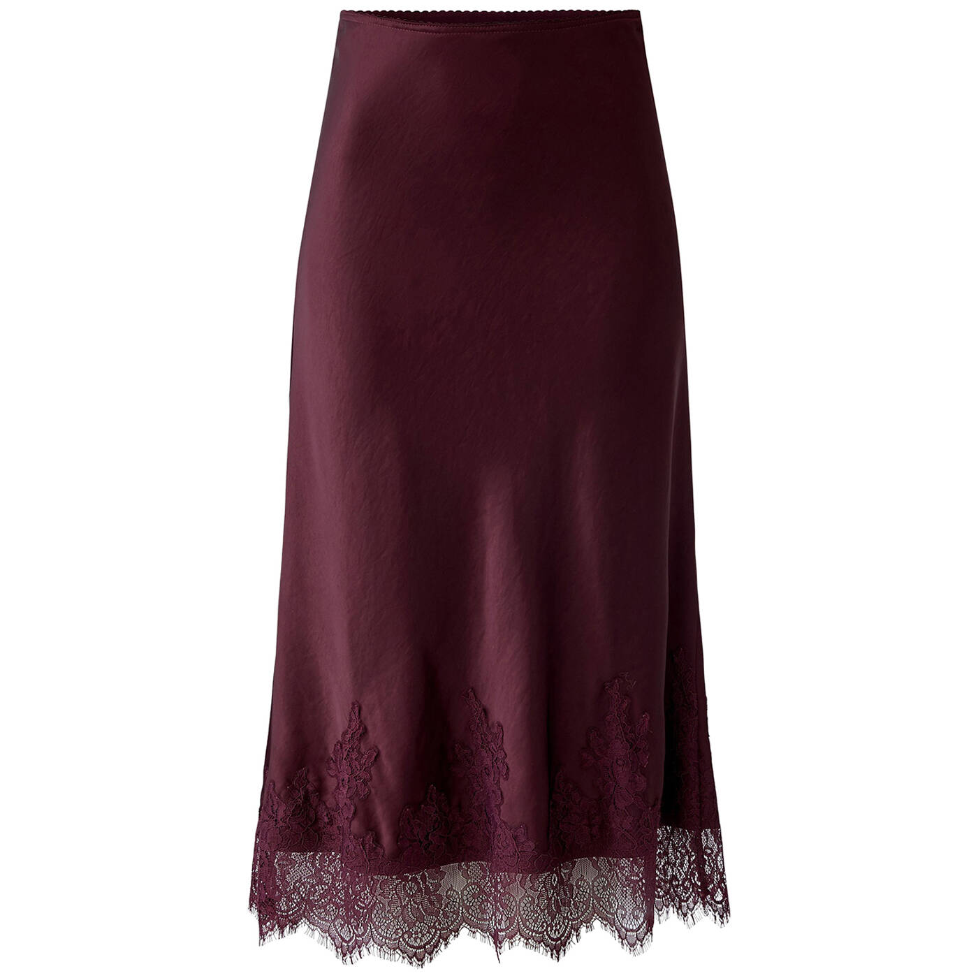 Satin mit aufwendiger Spitze am Saum A-Shape, Midi-Länge Schlupfform mit innenliegendem, gerundetem Zier-Gummiband Ungefüttert Ohne auftragenden Verschluss