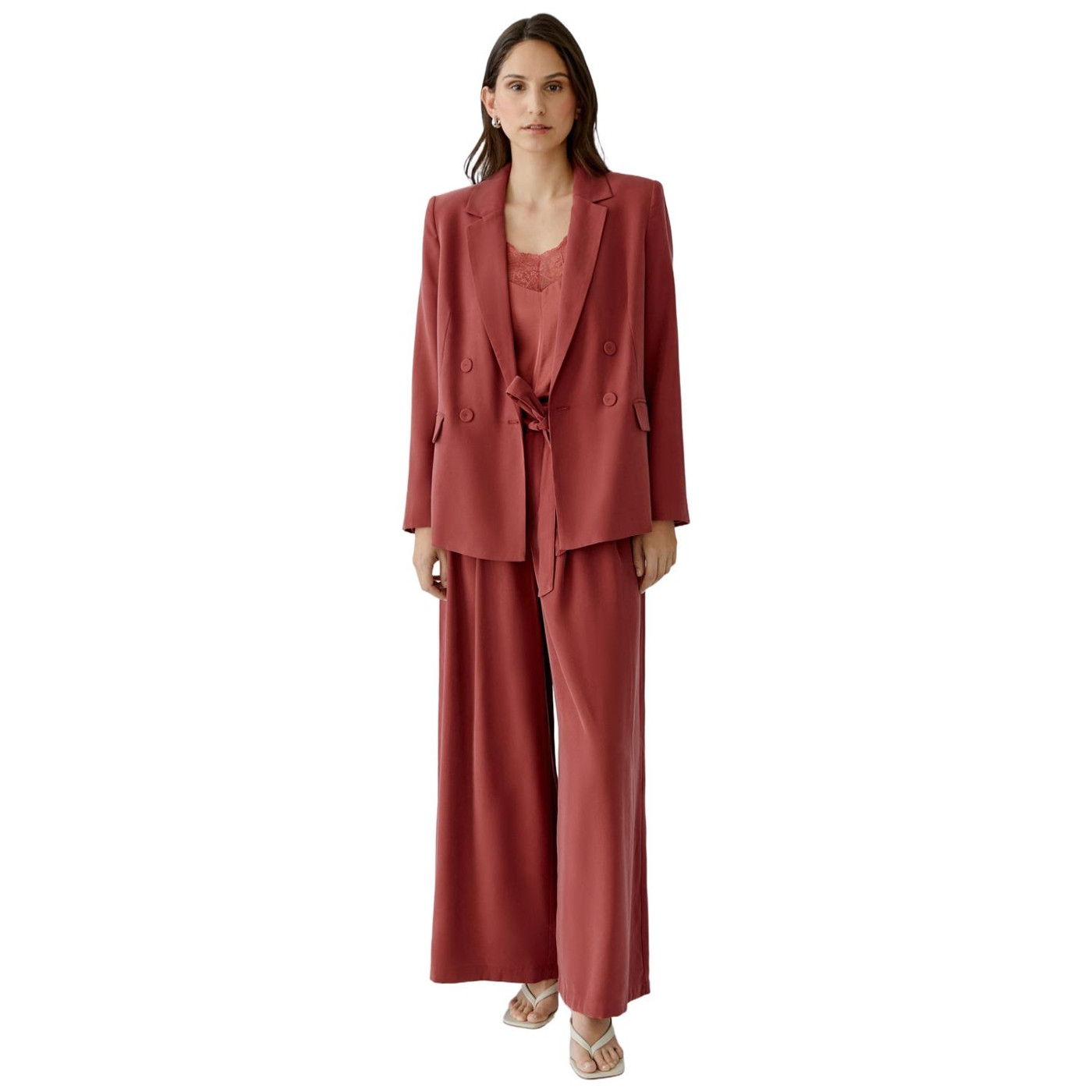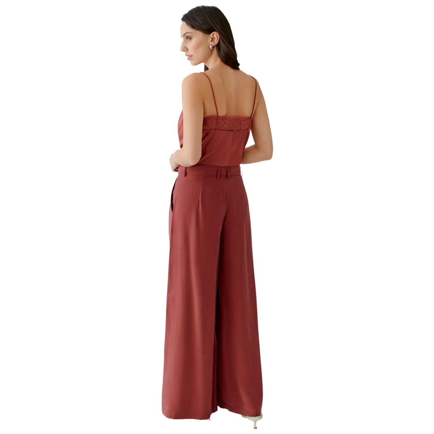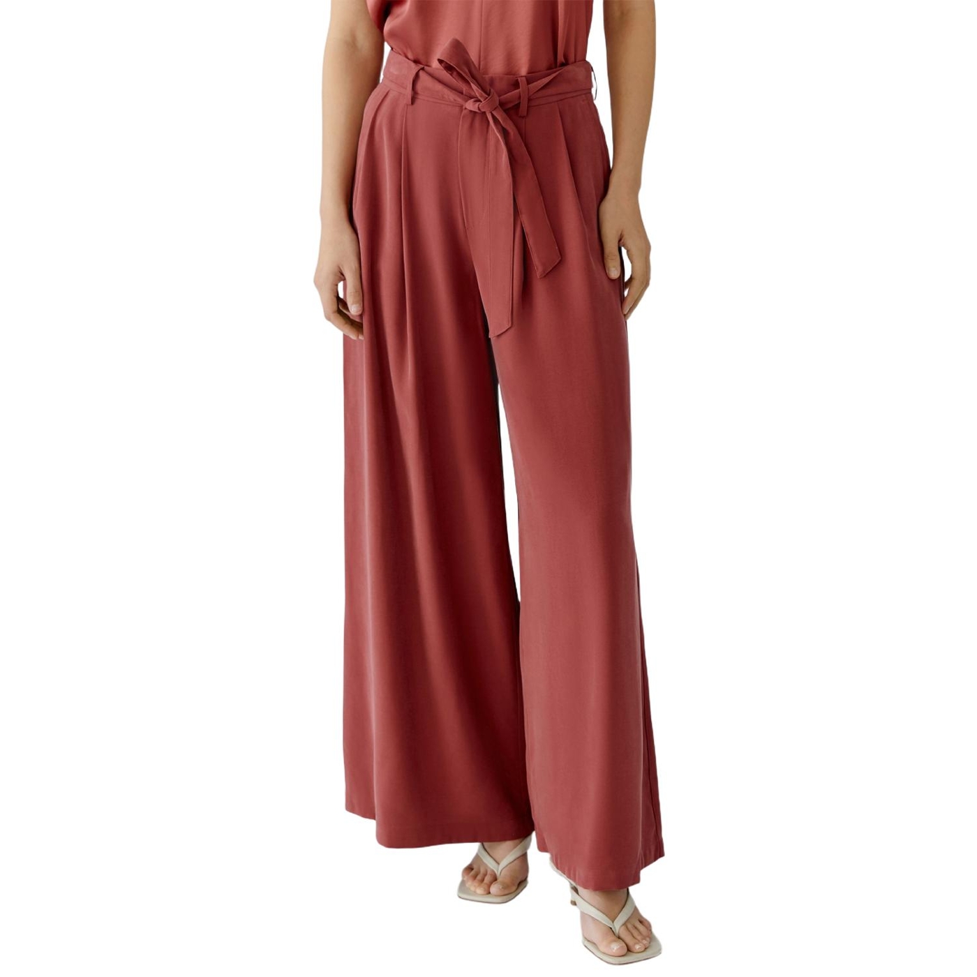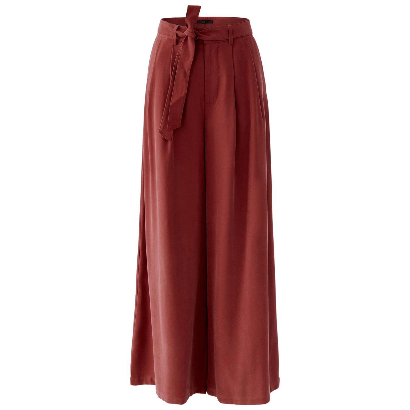 Viskose-Mischung Loose Fit, High Waist, lang Fester Bund mit Haken- und Reißverschluss Mit Bindegürtel Seitliche Eingrifftaschen