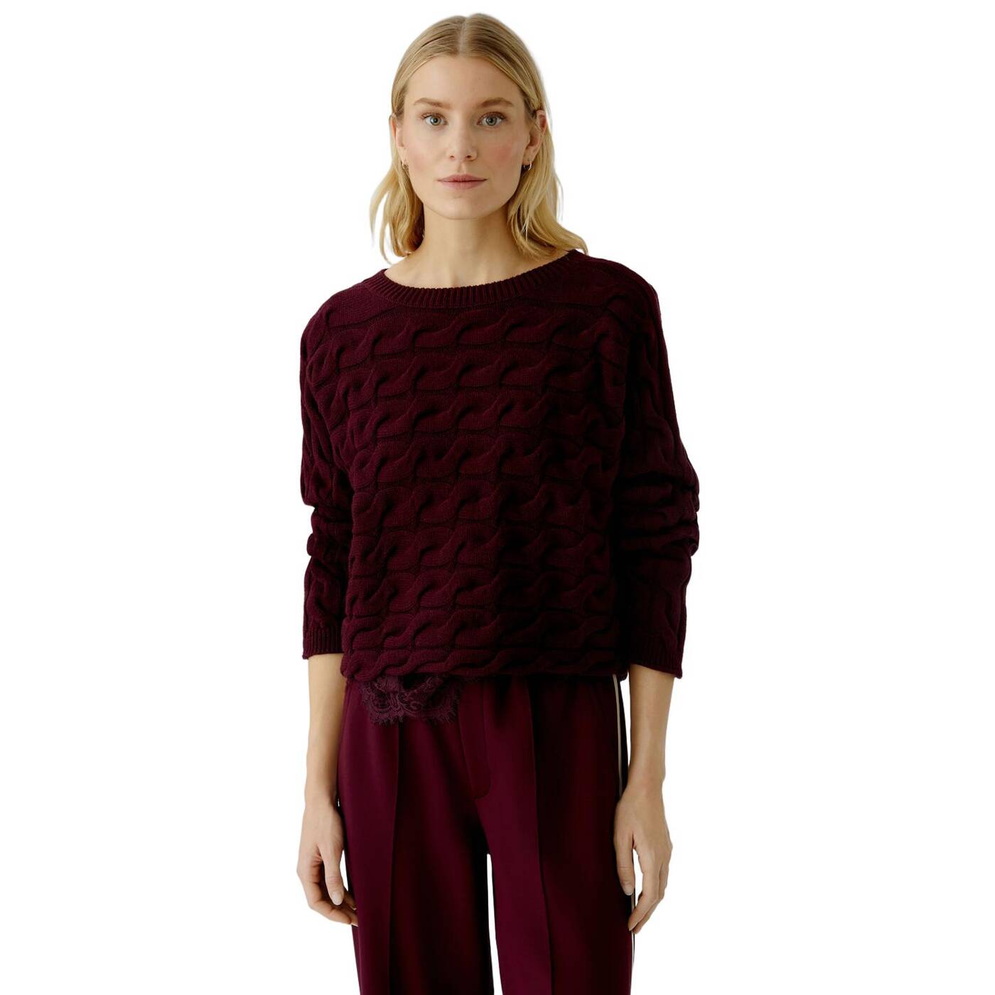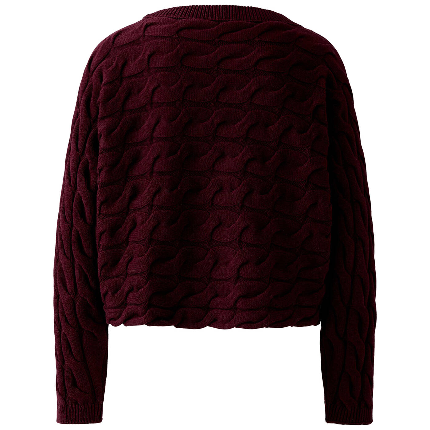 Cottonina: weiche Hochbausch Baumwollmischung quer allover im Zopfmuster gestrickt Boxy geschnitten, stark verkürzte Länge Leichter U-Boot mit Strickbündchen Der Pullover und der lange Arm wird in einem Stück horizontal gestrickt Ärmelabschluss mit Rippbündchen und kleiner Rollkante Das Zopfmuster schließt am Saum ab