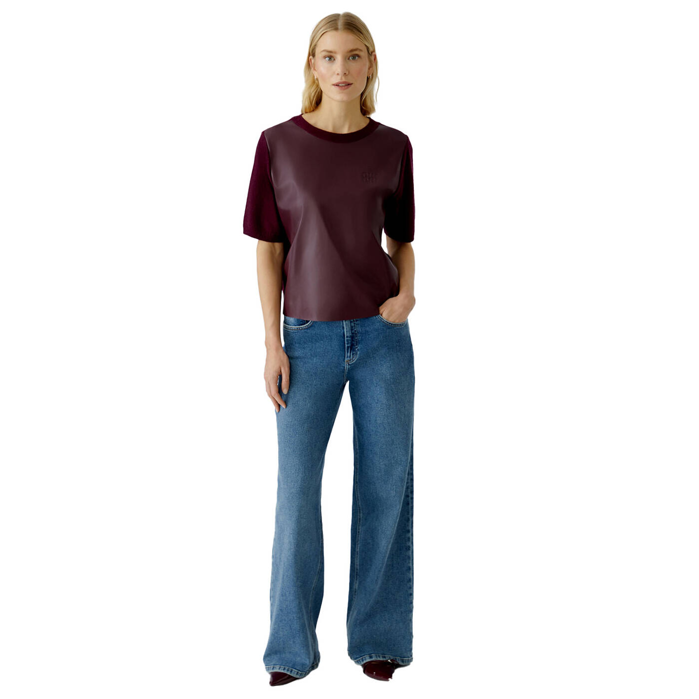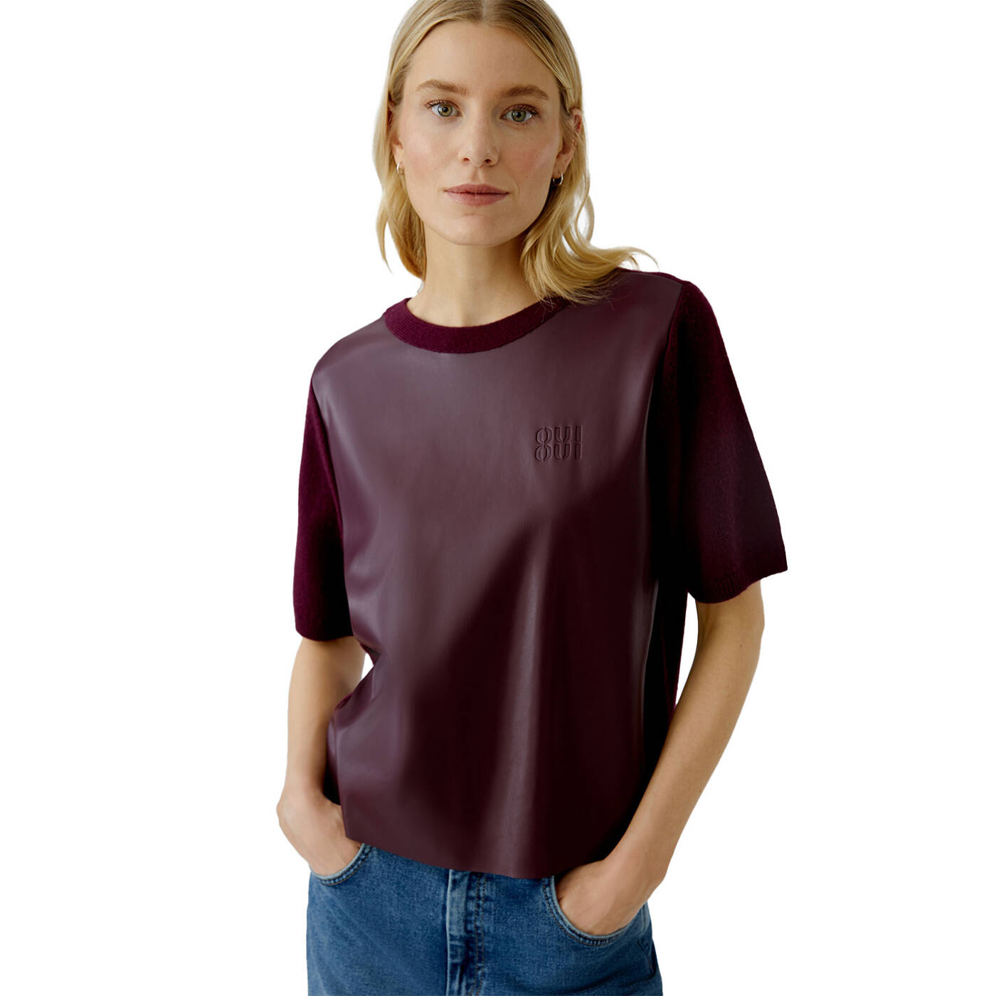Gestrickte Baumwollmischung im Patch Lässig geschnitten, verkürzte Länge Rundhals mit Strickbündchen Gestrickter Milanoarm Logoprägung auf der linken Brust