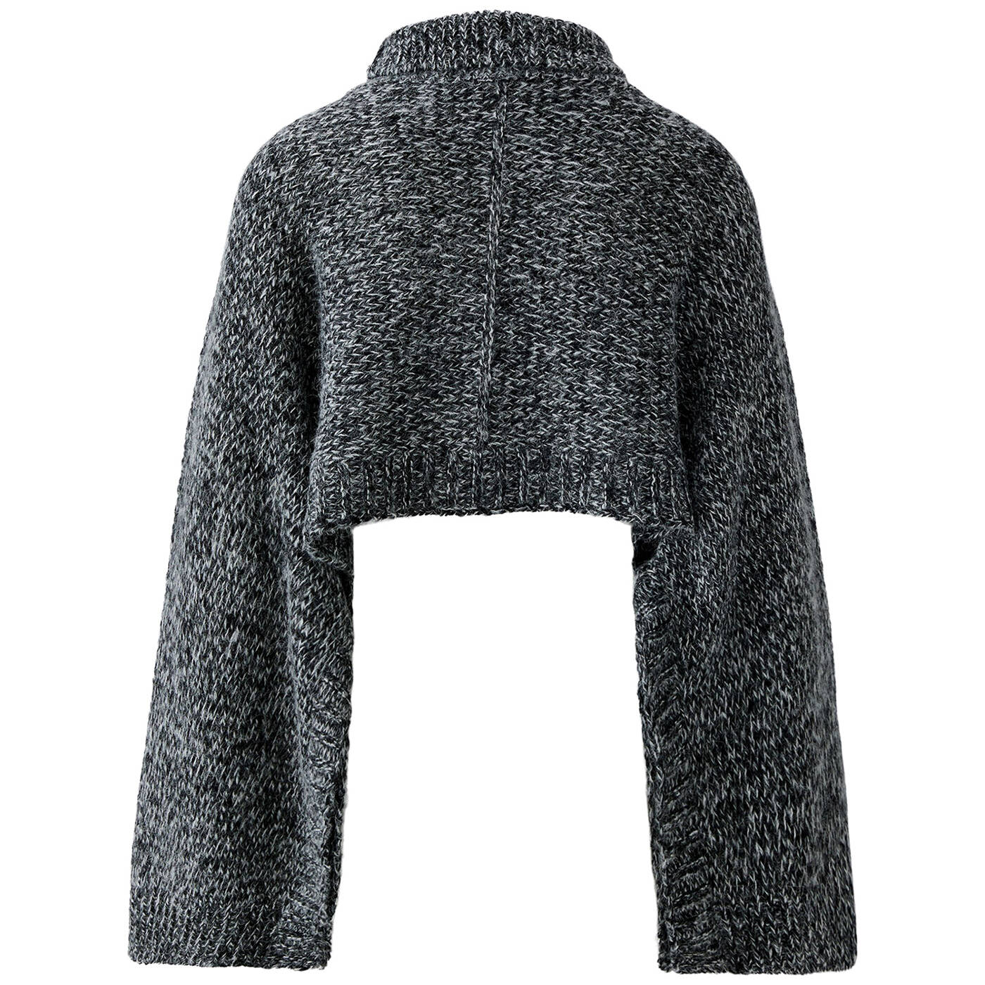 Super kuscheliges zweifarbiges Garn mit Alpaka und Wolle, glatt horizontal gestrickt Boxy geschnitten, in verkürzter Länge Hoher Stehkragen Extrem weiter Ärmel Saum in Rippe gestrickt reicht über die gesamte Ärmellänge Made in Italy