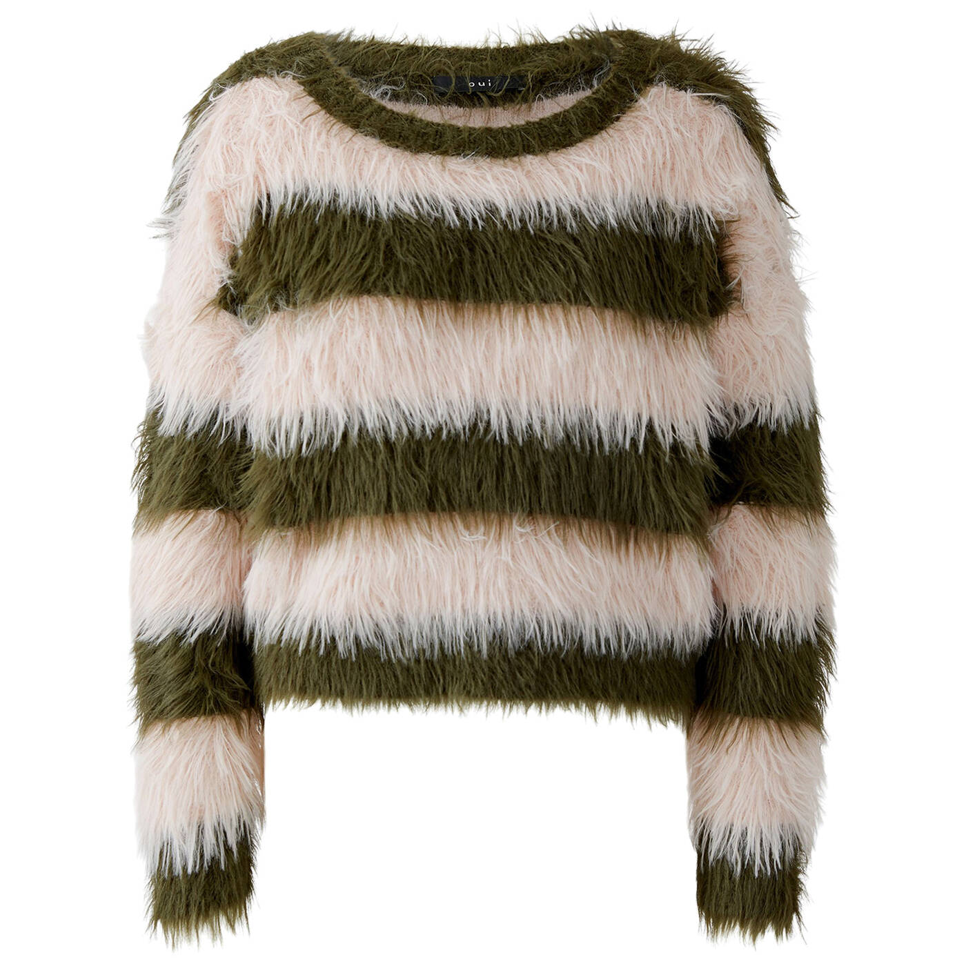 "Fellchengarn" mit glatter Viskosemischung getwistet, in Blockstreifen gestrickt Schmal geschnitten, in verkürzter Länge U-Boot Ausschnitt mit Rippbündchen Überschnittene Schulter, Langarm Zum Saum stark schmäler werdend, perfekt zum Rock