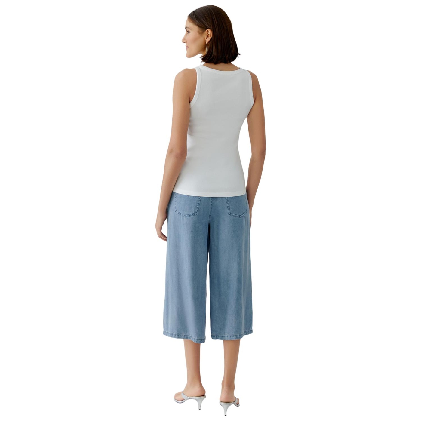 Elastische Baumwolle in feiner Rippe Schmal geschnitten, reguläre Länge Sportiver, tiefer Rundhals Hinten hochgeschlossen Die grippten Blenden bilden den schmalen Träge