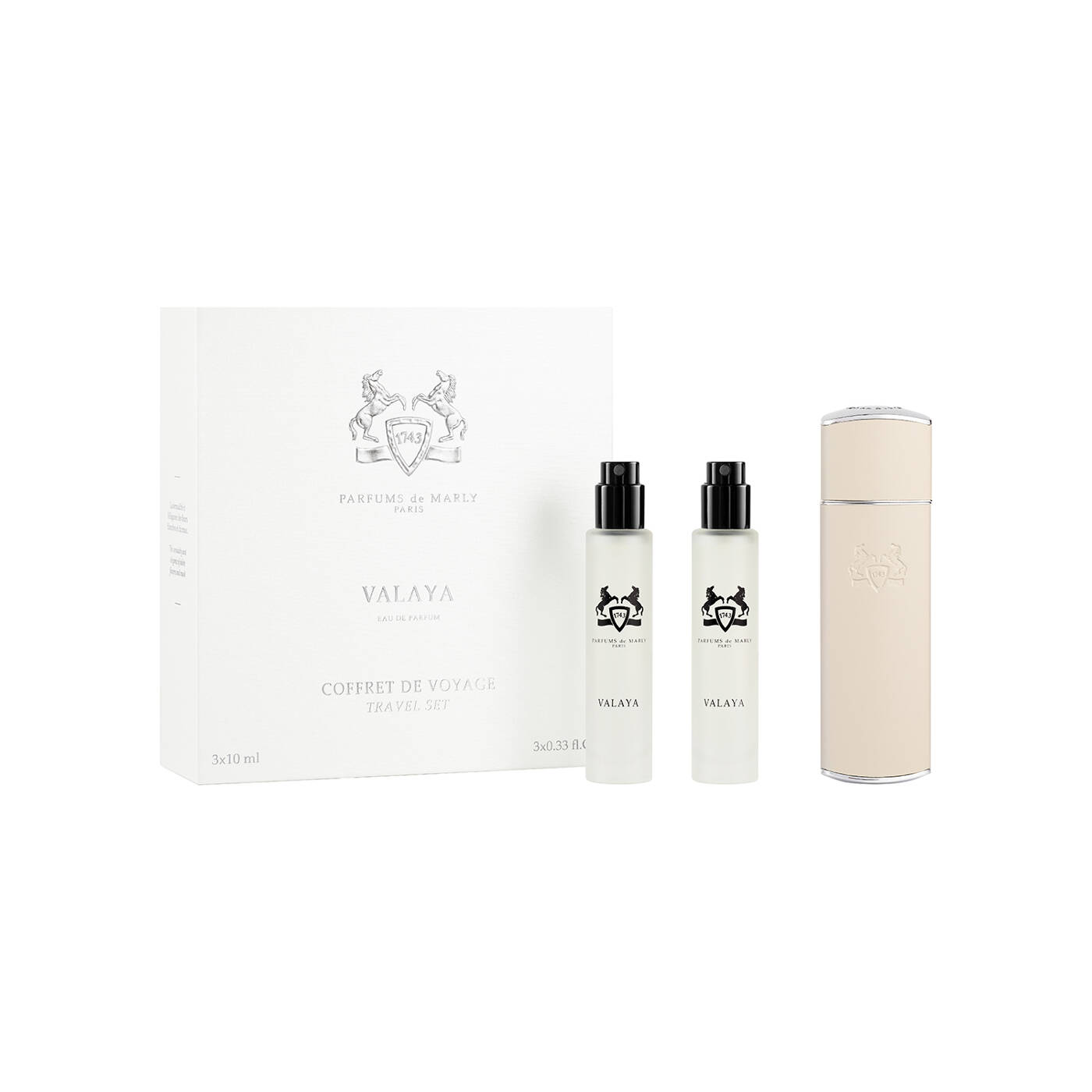 Für alle, die das Leben in Bewegung lieben, wurde das Valaya Travel Set geschaffen: ein stilvolles, nachfüllbares Reiseetui, begleitet von drei 10-ml-Nachfüllflakons. Es ist der perfekte Begleiter, um das Dufterlebnis überall und jederzeit zu verlängern. Raffiniert im Design, praktisch im Alltag – und immer bereit, Ihre persönliche Duftspur mit Leichtigkeit und Eleganz fortzusetzen.