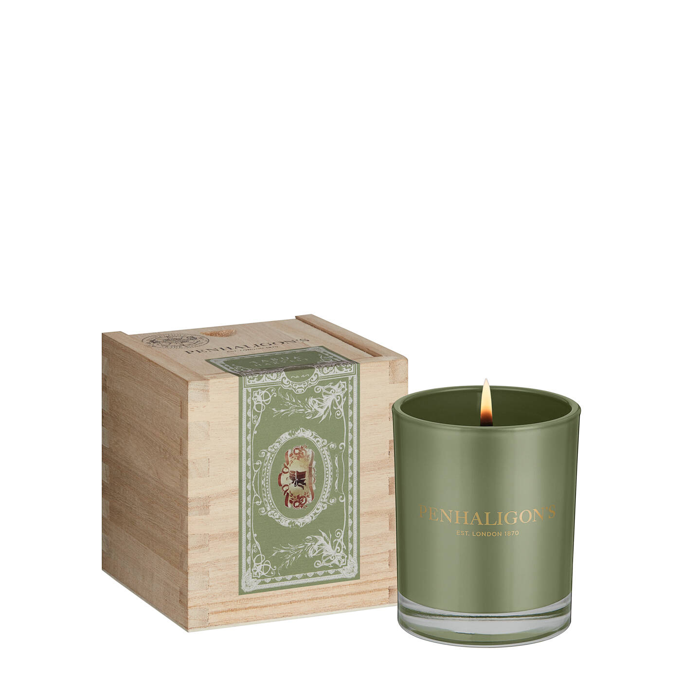 Reife Feigen. Zweige von Minze. Milder Moschus für wilde Herbsttage, eingefangen in einer Kerze als Darbietung.​