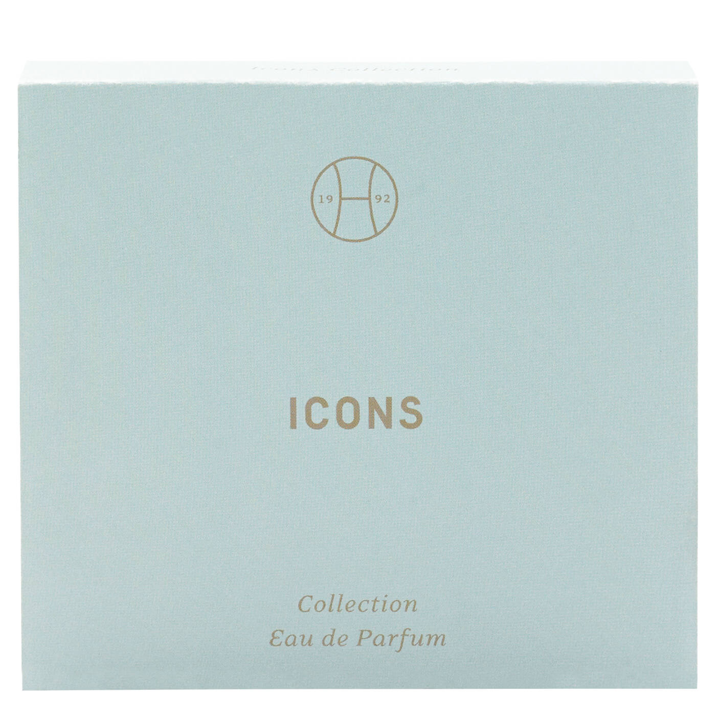 Die Icons-Kollektion wurde als unser Favorit aus jeder der fünf Duftfamilien ausgewählt und ist eine Einladung in die vielen Welten von Parfümeur H, von blauer Tinte auf weißem Papier bis hin zu tropischen Sommergewitterwolken.