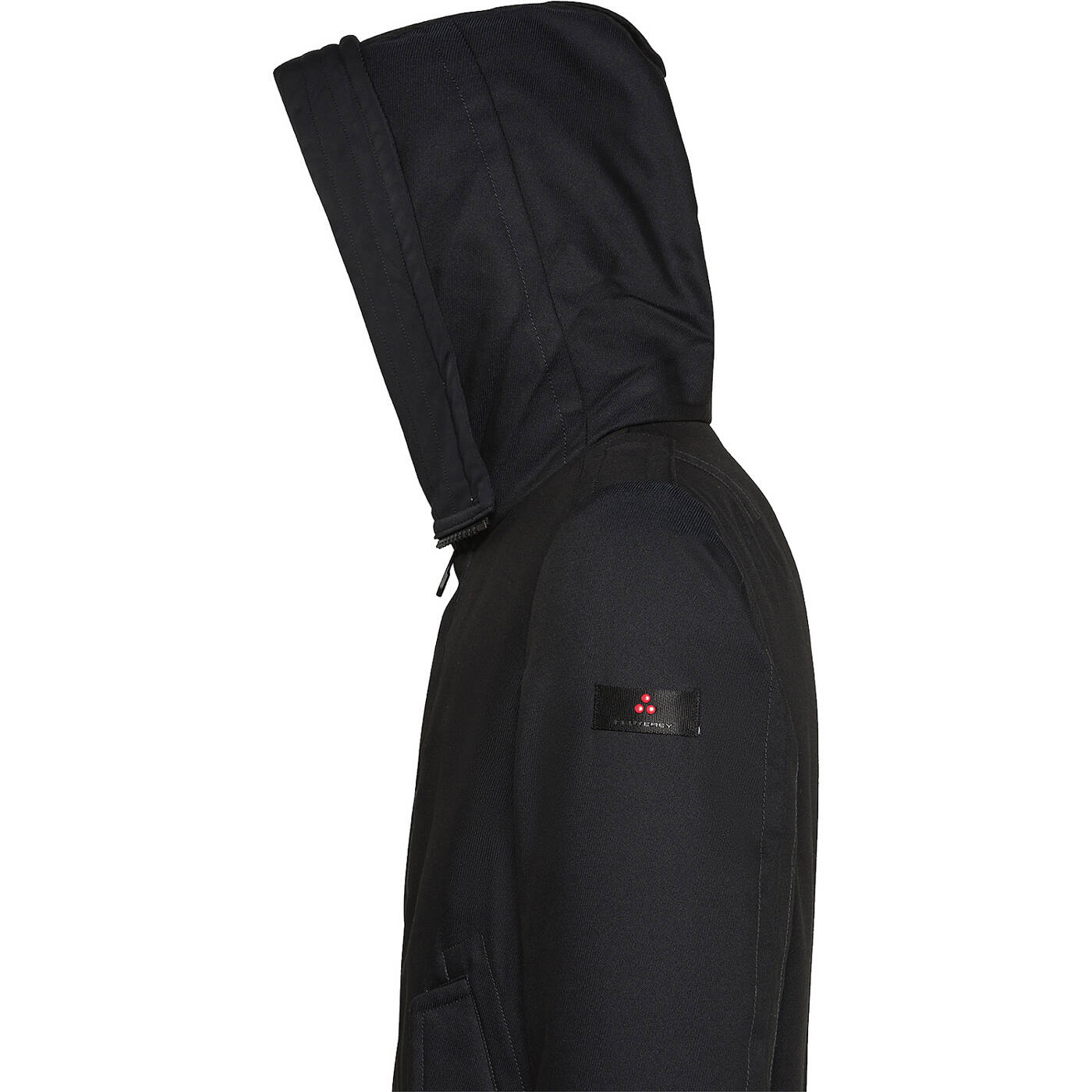 • Verdeckter, mittiger Doppelschieber-Reißverschluss und sichtbare Druckknöpfe
