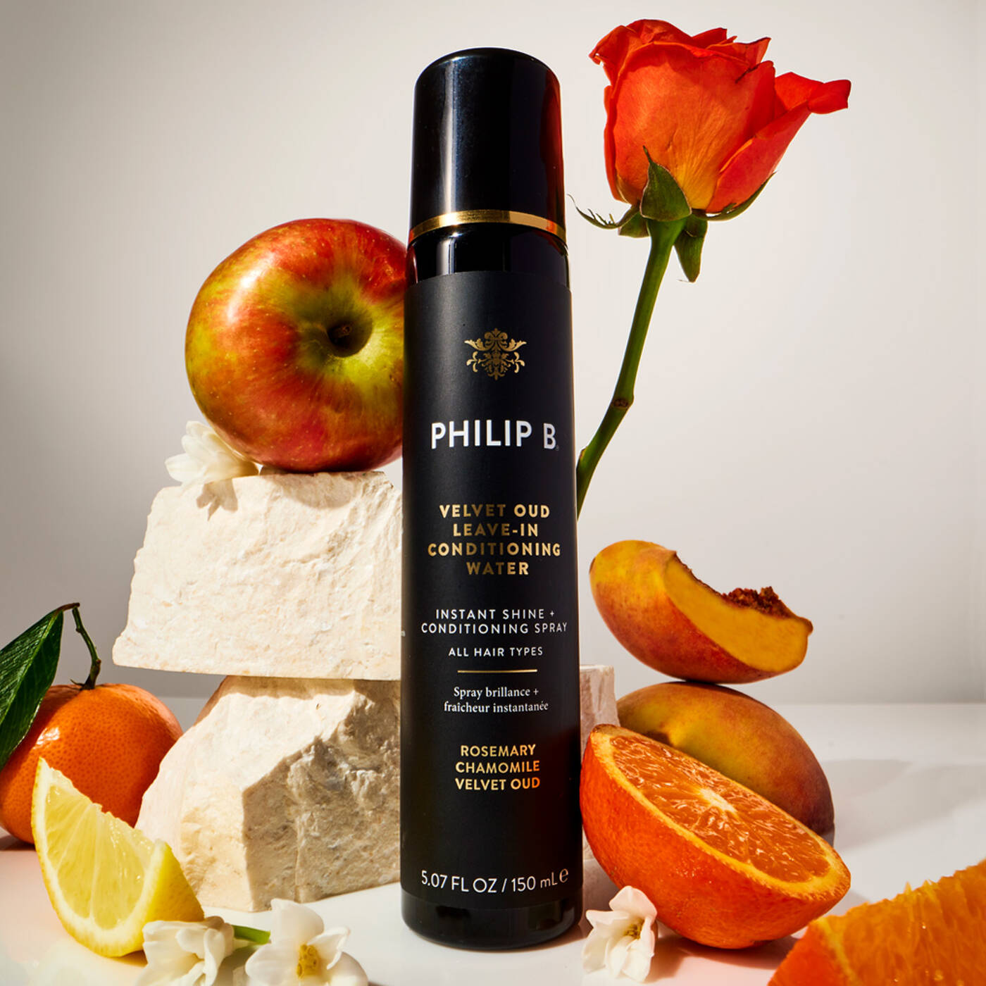 "Unser leichtes, revitalisierendes Leave-In Spray, mit dem luxuriösen und betörenden Duft von Velvet Oud, hüllt Ihr Haar in einen brillanten Glanz und verleiht ihm eine unvergleichlich geschmeidige, seidig-glatte Textur. Das Ergebnis: Ihr Haar erstrahlt in seiner sinnlichsten und schönsten Form.
