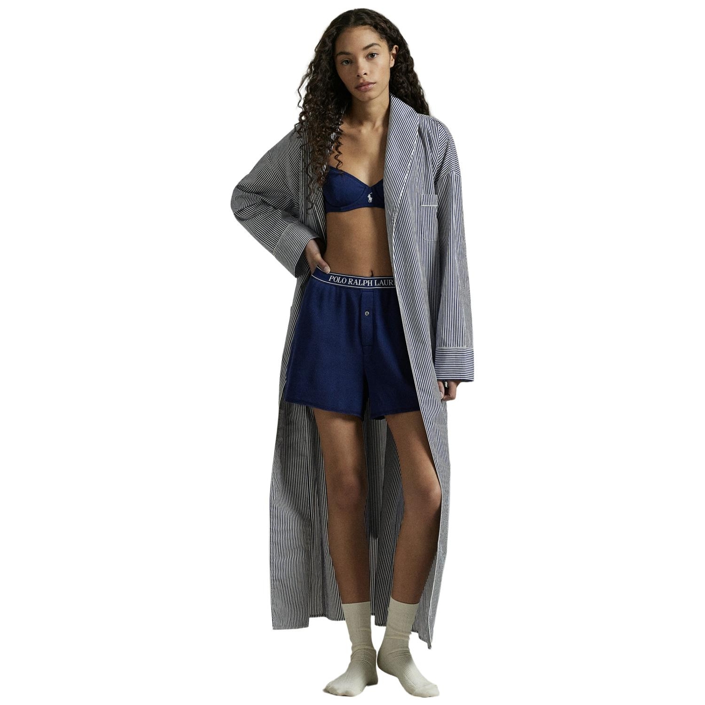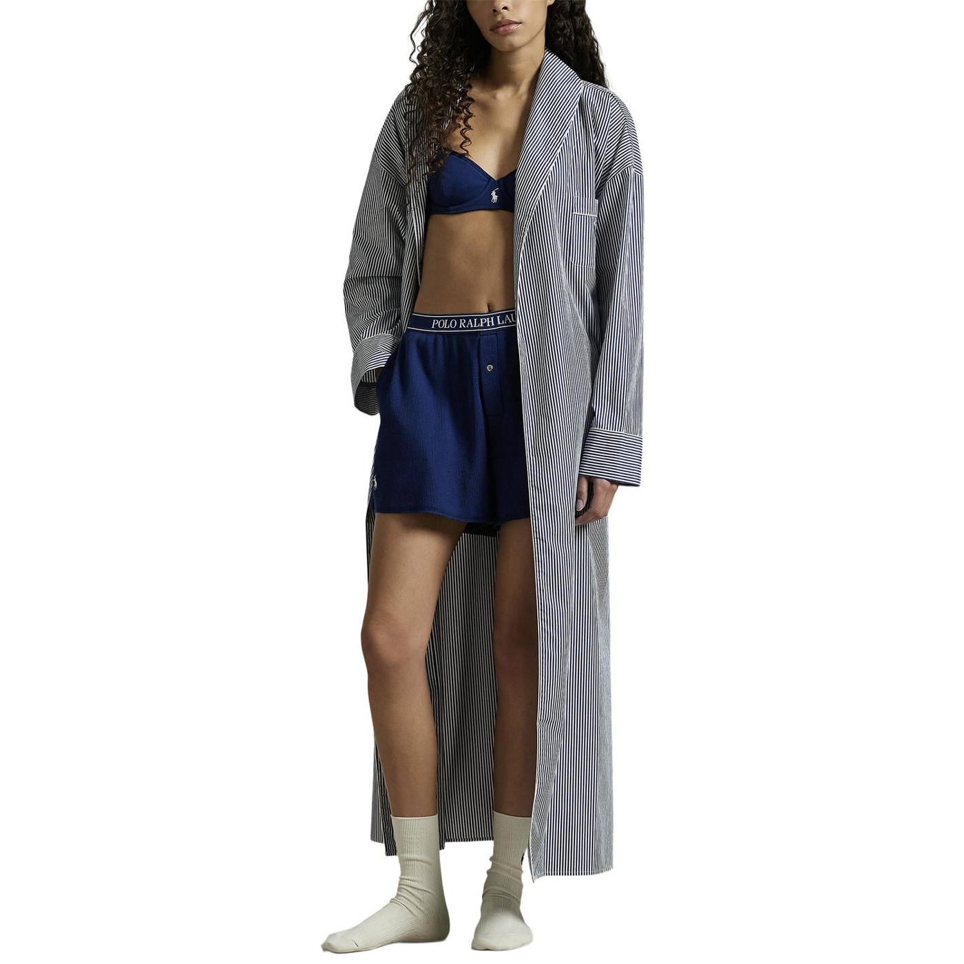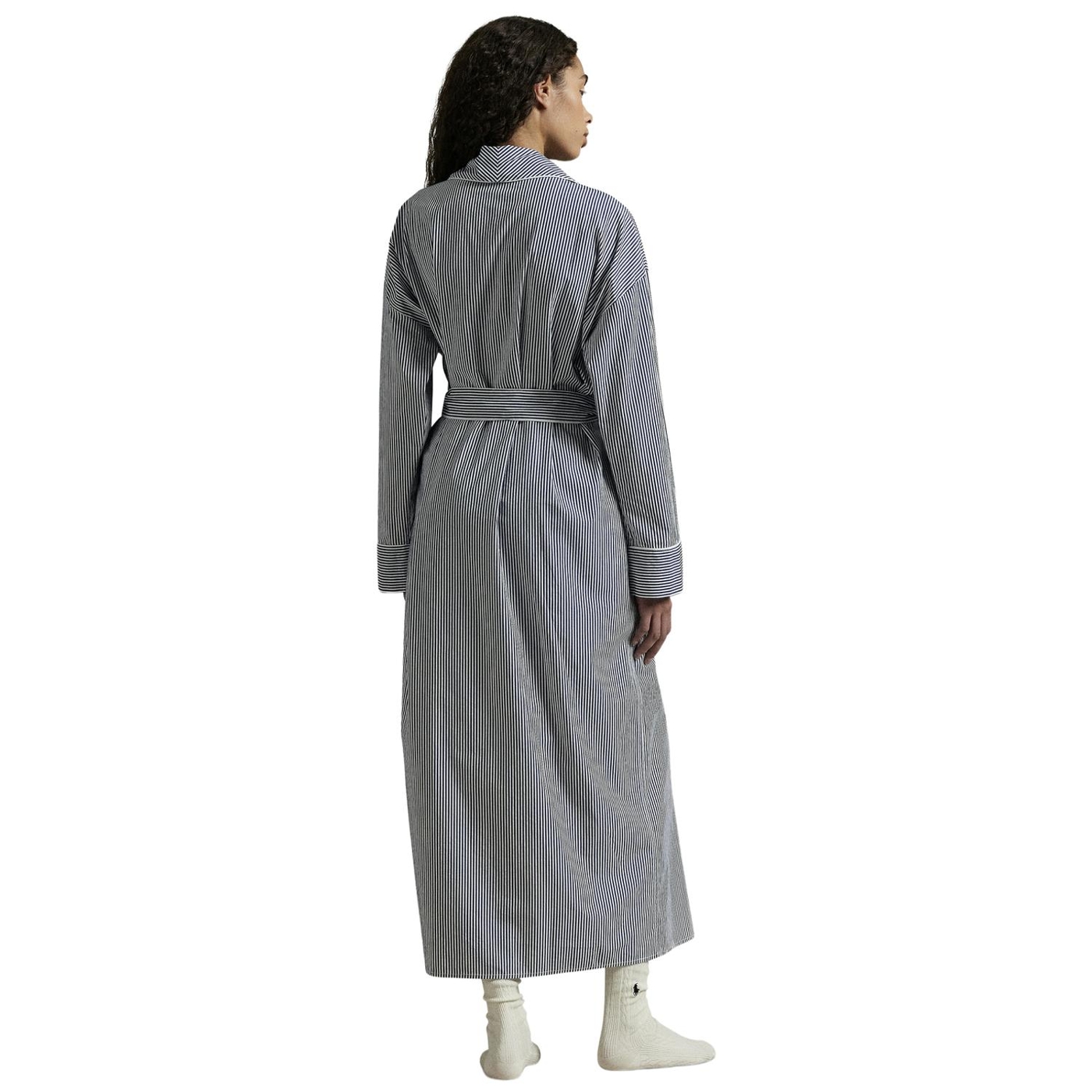 Dieser morgenmantel mit gürtel ist aus leichter baumwollpopeline gefertigt und hat ein klassisches streifenmotiv sowie eine ralph lauren pony-stickerei auf der brust, die für ein leichtes gewicht und einen weichen griff sorgt.