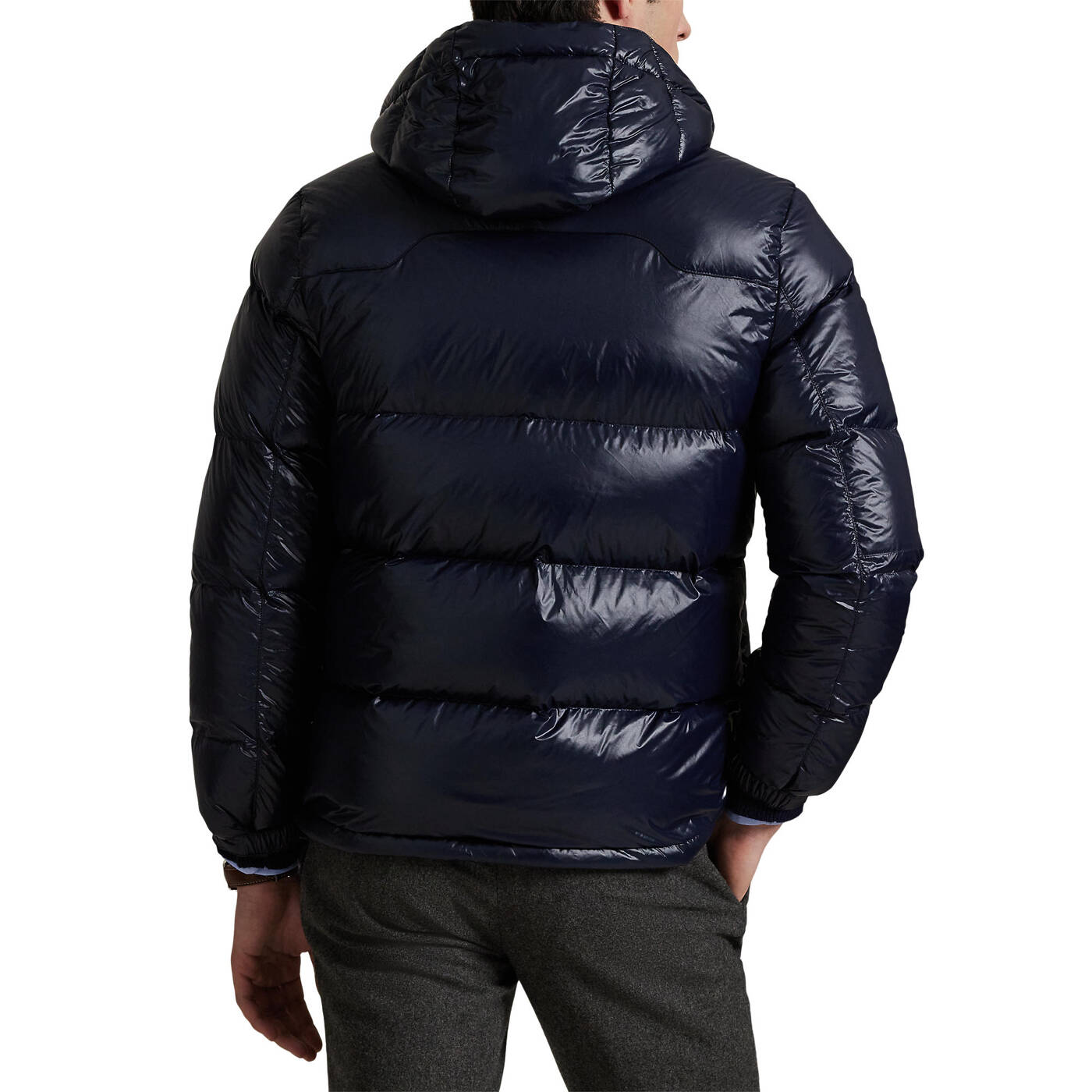 - Außenmaterial und Futter: 100 % Nylon. Kapuzenfüllung: 100 % recycelter Polyester. Füllung: 75 % Entendaunen, 25 % Entenfedern.