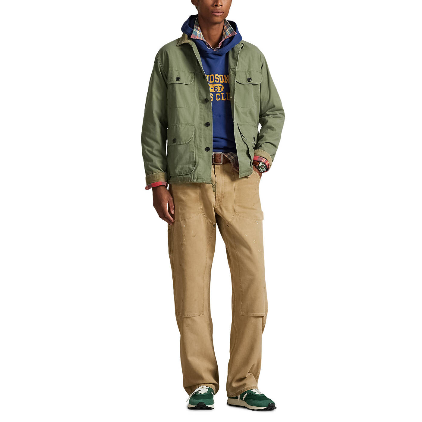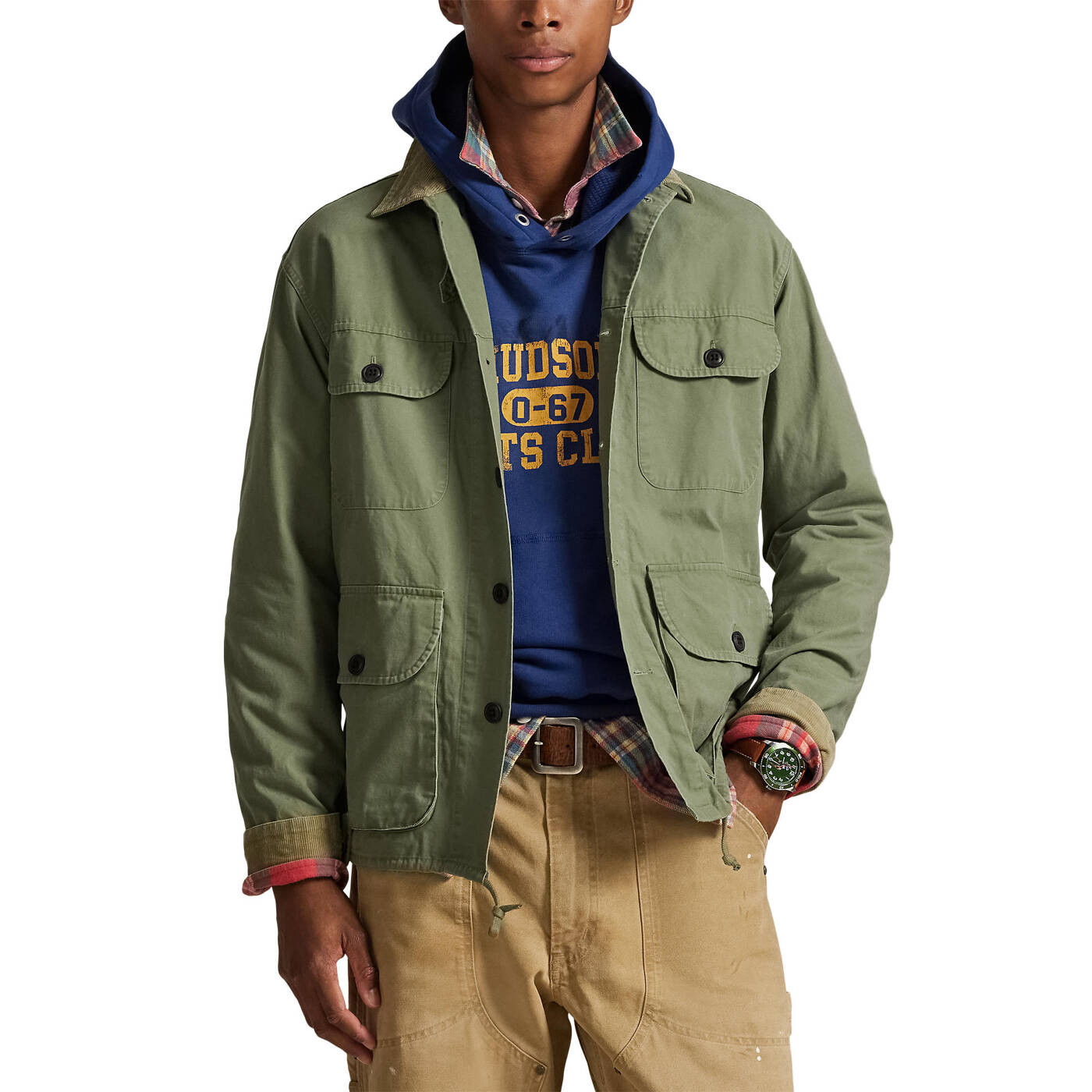 • Zwei geknöpfte Taschen auf der Brust. Zwei geknöpfte Taschen in Taillenhöhe vorne. Innentasche an der linken Taille.