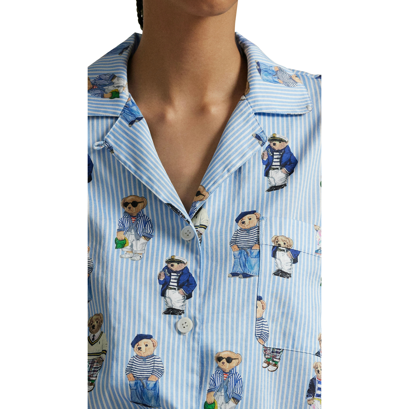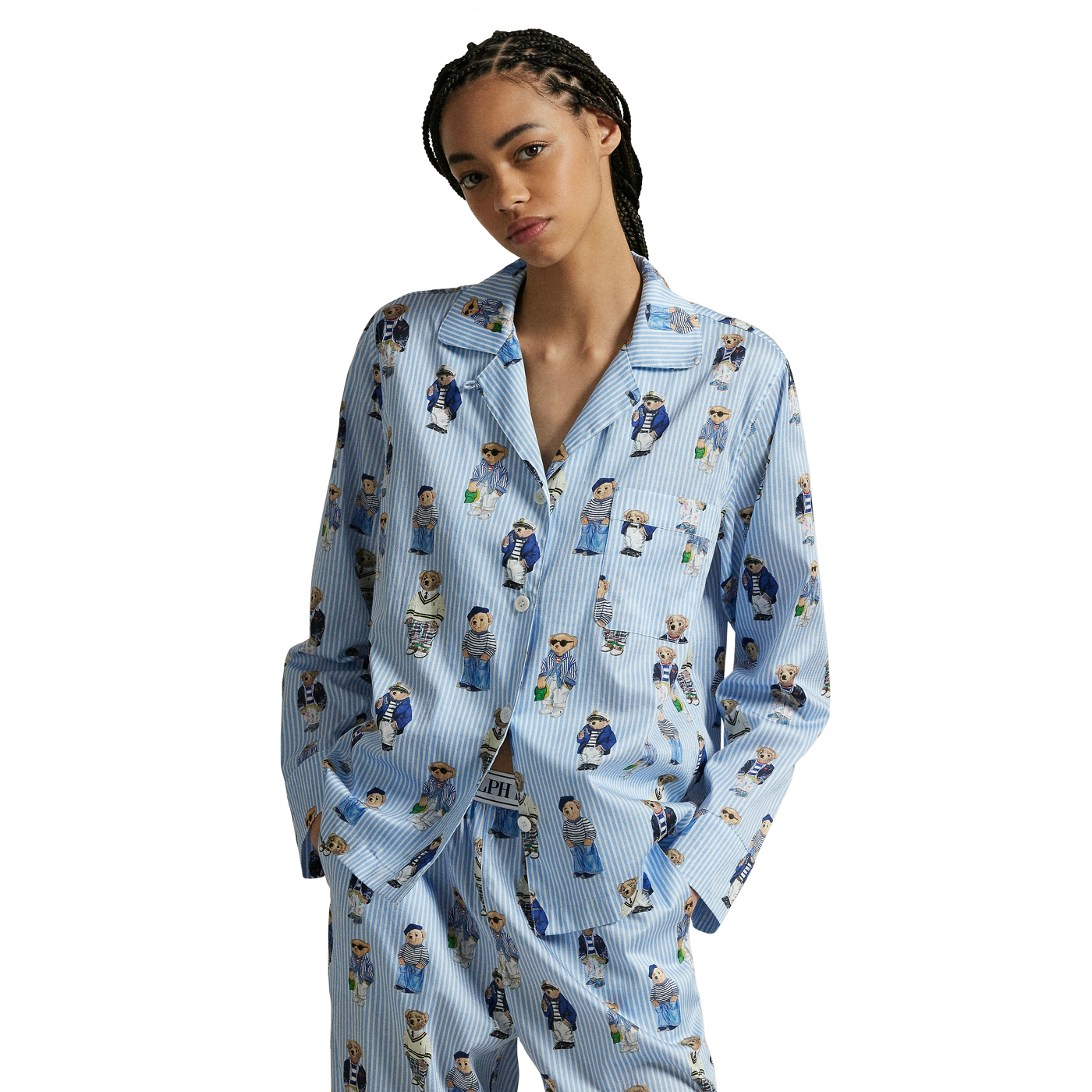 Der Polo-Bär von Ralph Lauren ist auf diesem gestreiften Pyjama-Set aufgedruckt, das aus einem langärmeligen Hemd mit Revers und einer langen Hose besteht. Unser charakteristischer Logo-Bund rundet den Look ab.