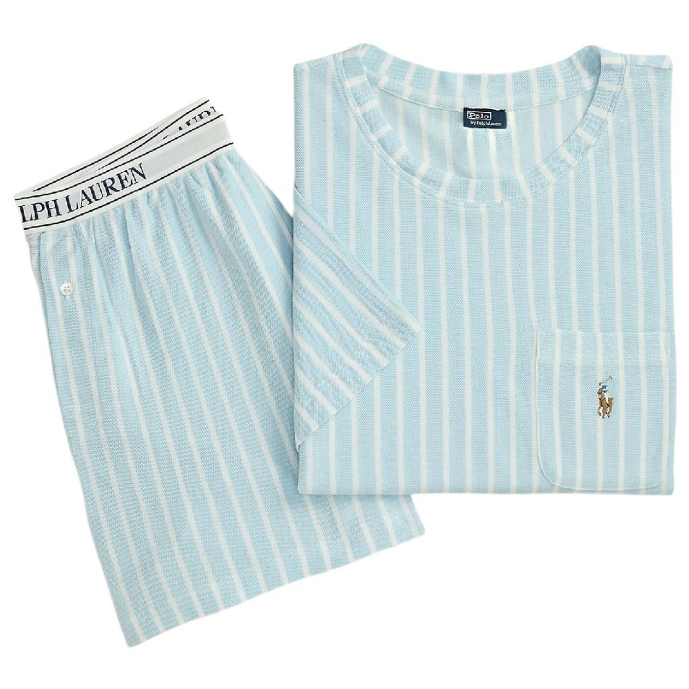 Dieses zweiteilige pyjama-set aus einer weichen baumwollmischung besteht aus einem t-shirt mit rundhalsausschnitt und shorts mit unserem charakteristischen elastischen bund "polo ralph lauren".