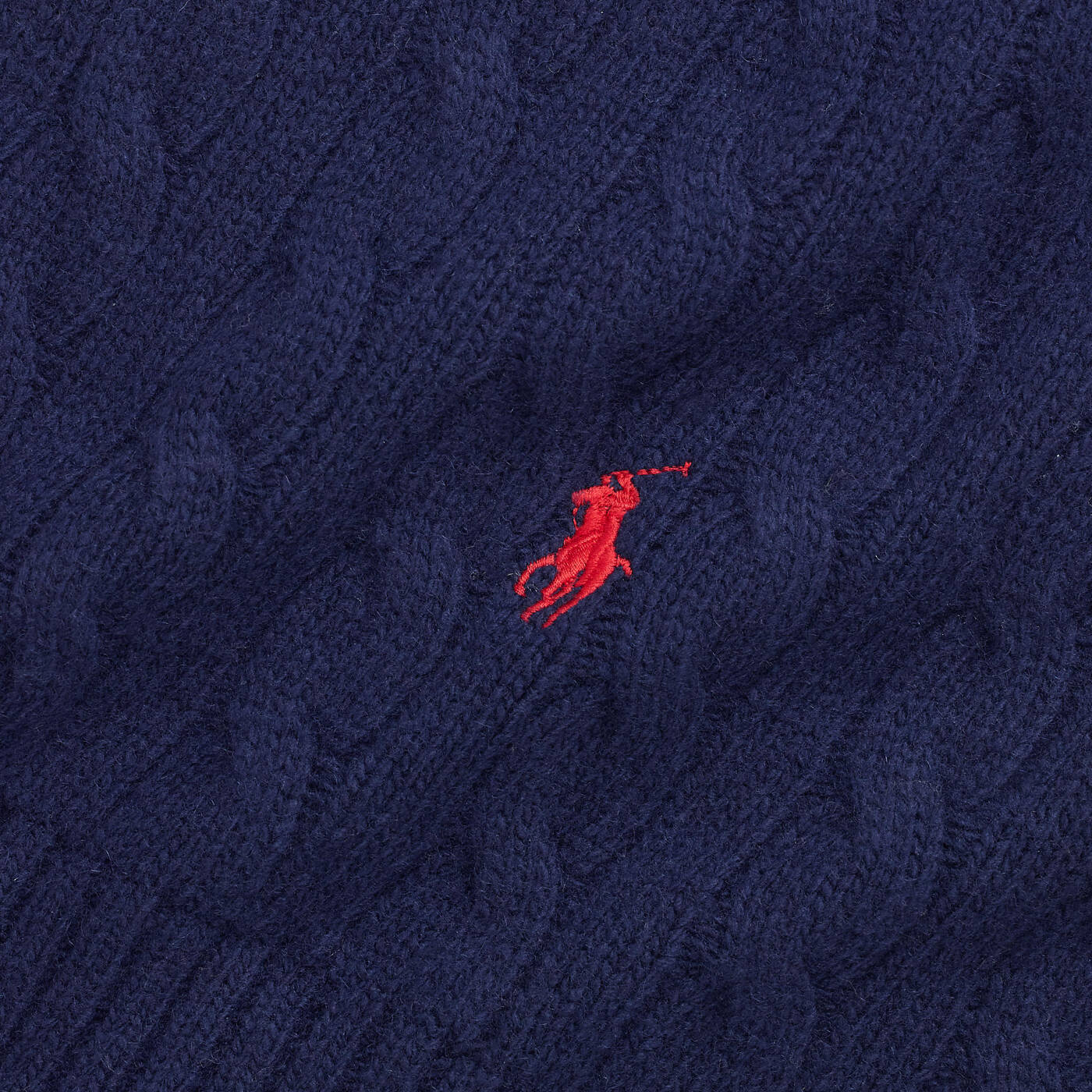 Dieser aus Garnen mit besonders feiner Wolle gefertigte Schal mit klassischem Zopfmuster ist mit unserem charakteristischen gestickten Pony akzentuiert.