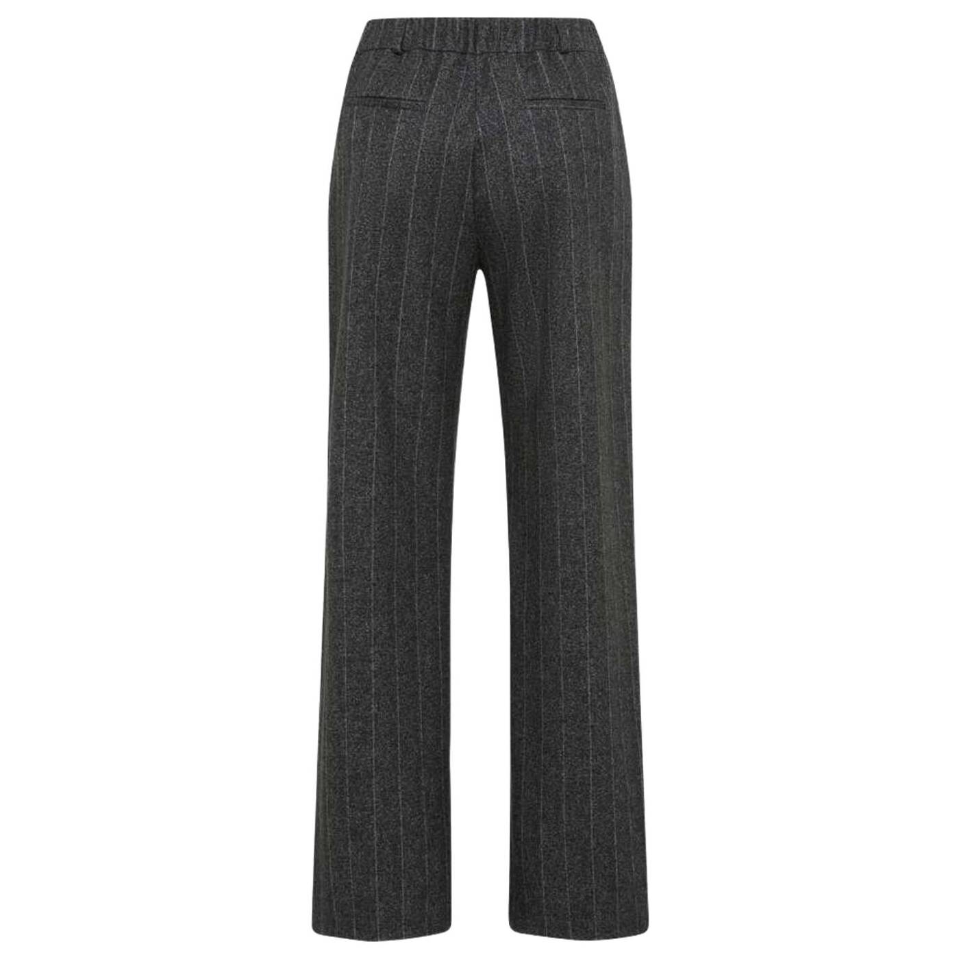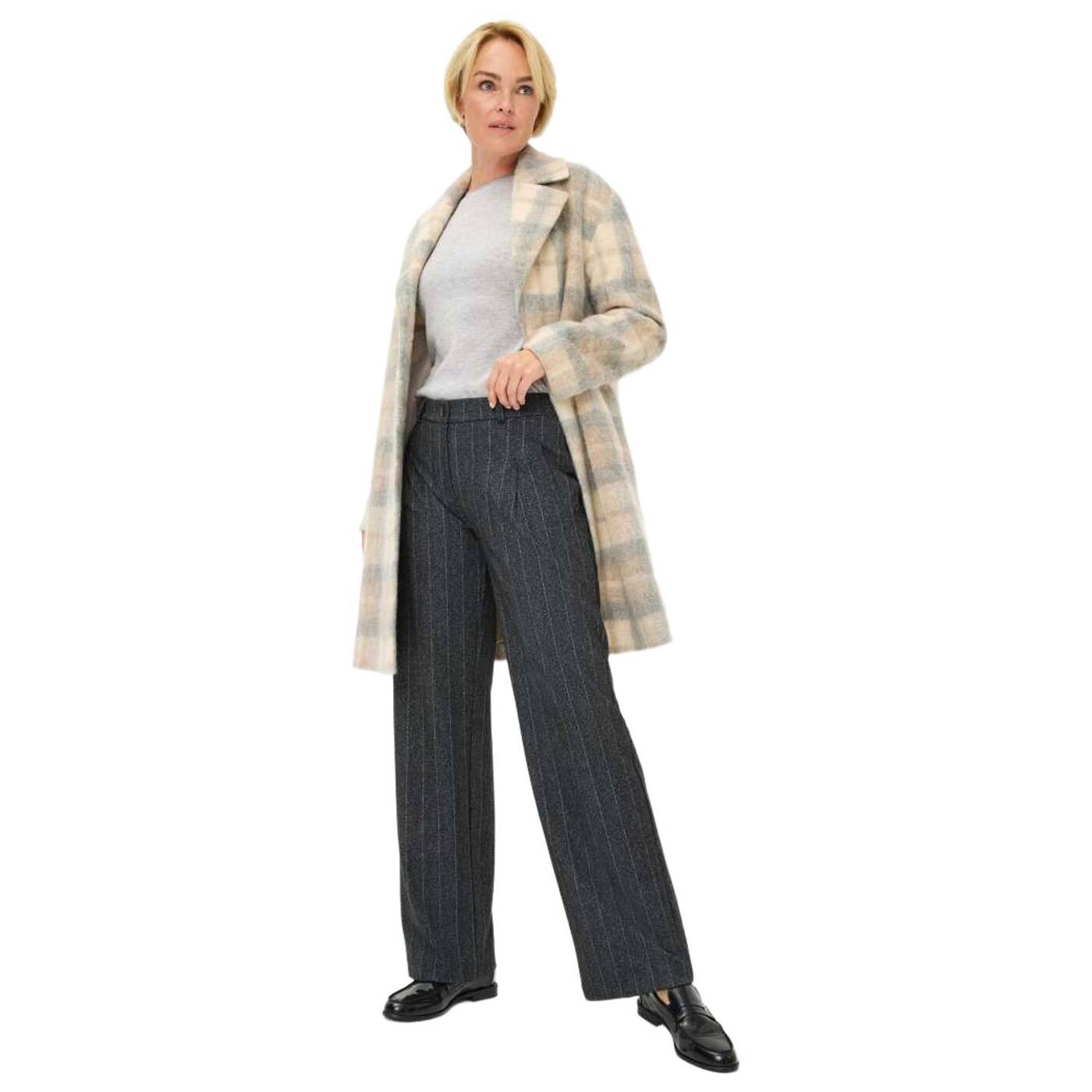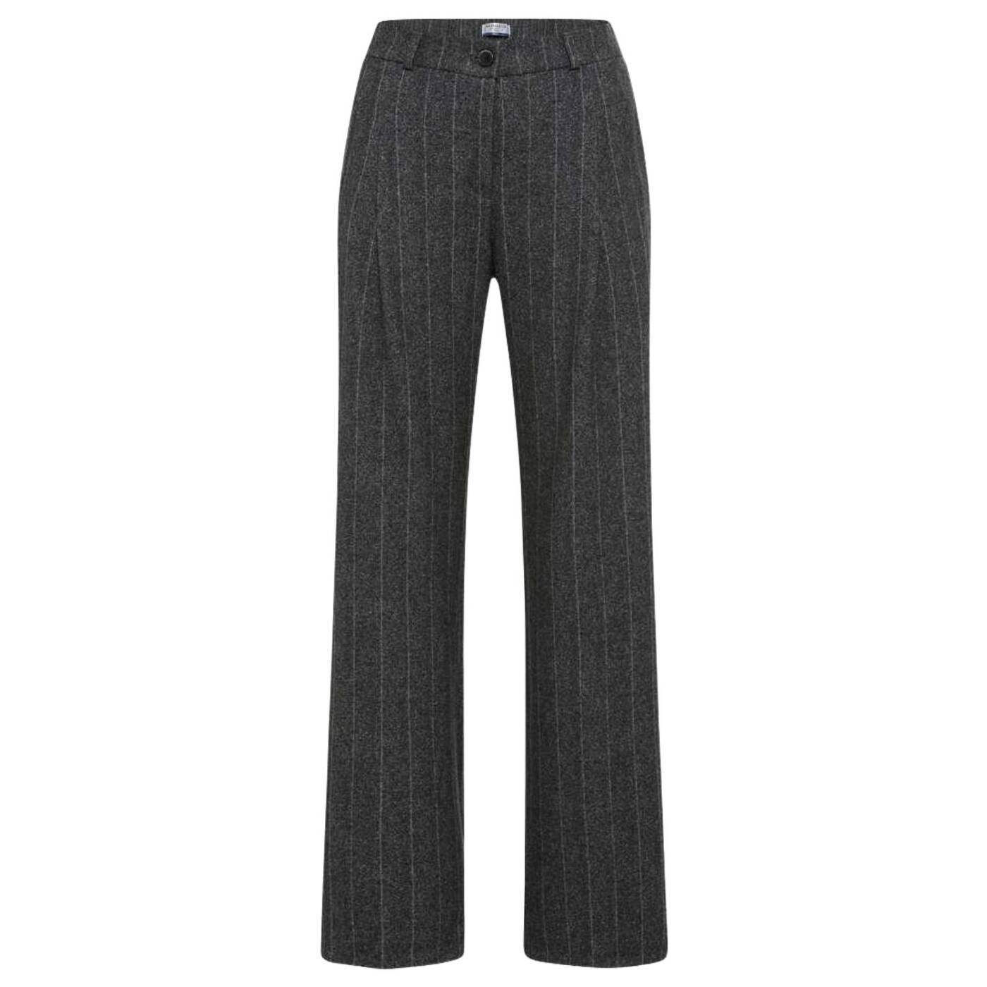 Mit klarer linie und stilvollem auftritt: die hose im style peggy flared ist ein moderner allrounder für alle, die klassische eleganz neu denken möchten. die weite silhouette in kombination mit einem slim fit sorgt für eine schmeichelhafte passform und einen fließenden fall. dank hoher leibhöhe und modernen bundfalten sitzt sie perfekt auf taille und verlängert optisch das bein. der verdeckte reißverschluss und die präzise platzierten leistentaschen vorn und hinten unterstreichen den minimalistischen look mit dezenter raffinesse. besonderes detail: das feine nadelstreifenmuster. das material aus polyester, viskose und elasthan überzeugt durch seine elastische qualität und den angenehm weichen griff. jersey ist bekannt für seine softe, flexible struktur und trägt sich besonders angenehm. es passt sich sanft der figur an, bleibt dabei formstabil und knitterarm . diese damenhose verbindet komfort mit klassischem stil und ist ein must-have für ihre moderne, souveräne garderobe.
