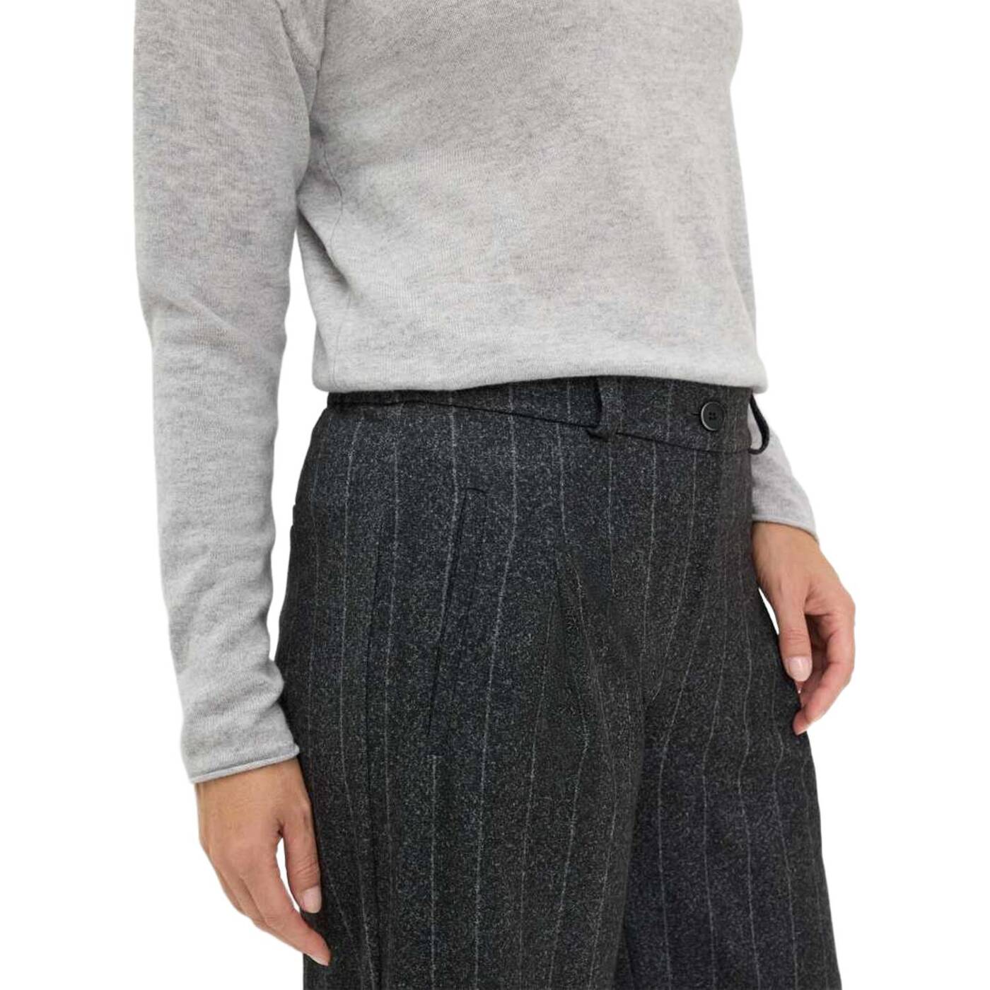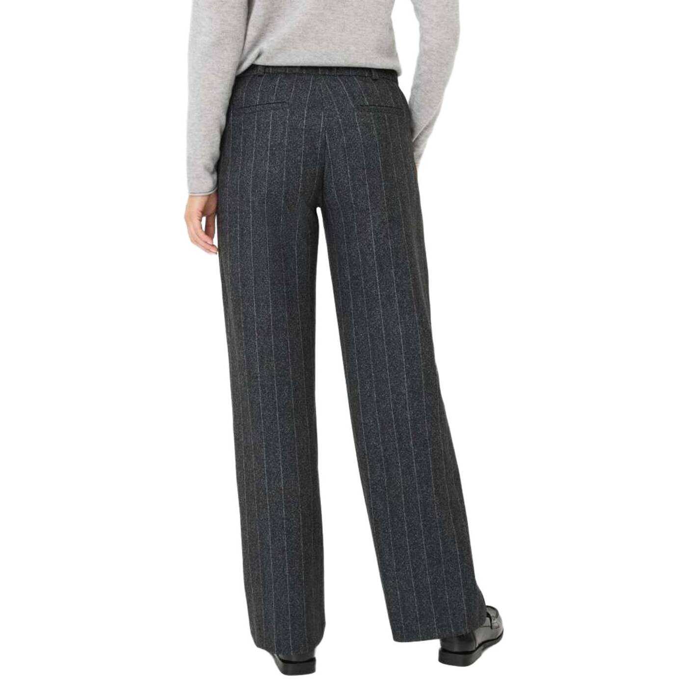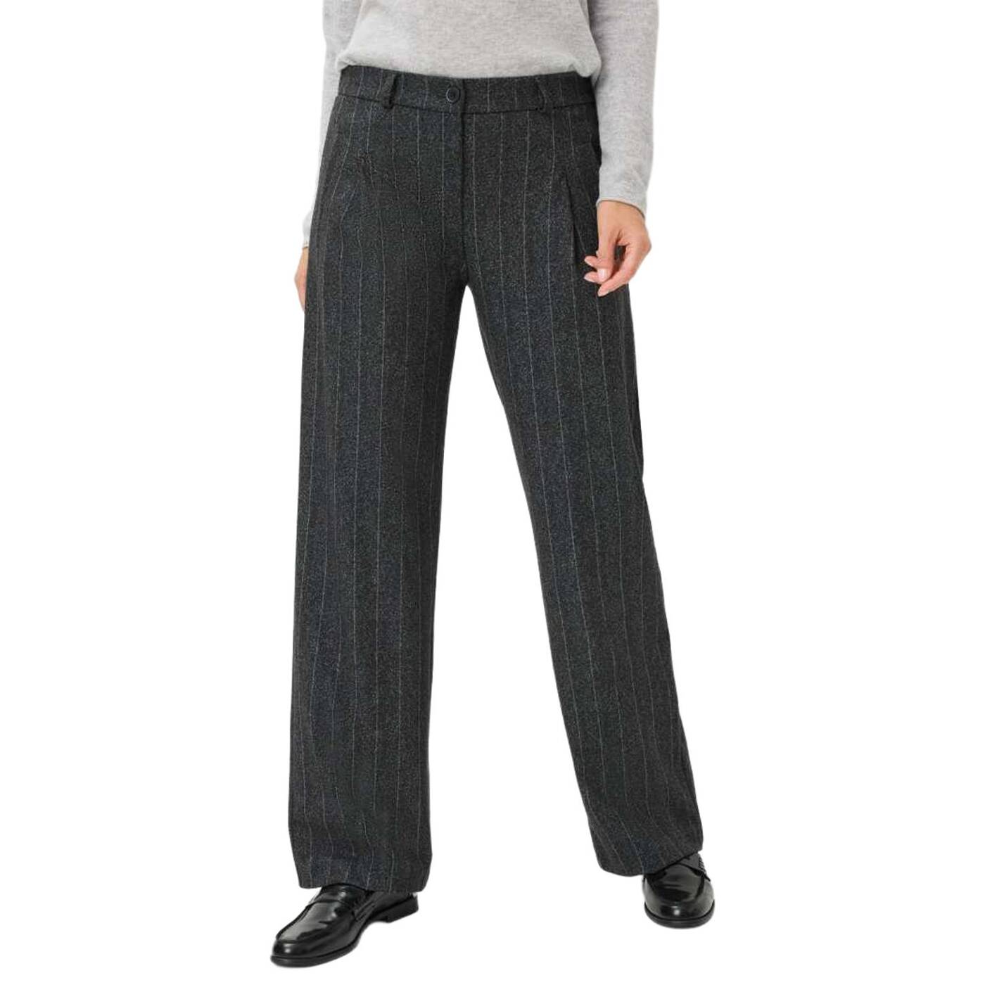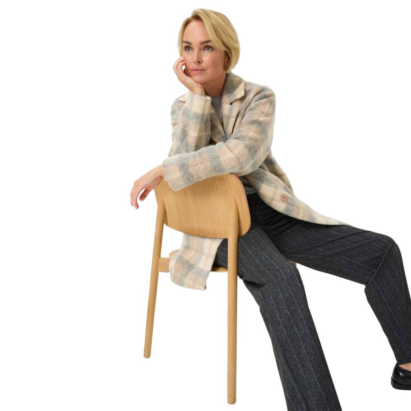 Mit klarer linie und stilvollem auftritt: die hose im style peggy flared ist ein moderner allrounder für alle, die klassische eleganz neu denken möchten. die weite silhouette in kombination mit einem slim fit sorgt für eine schmeichelhafte passform und einen fließenden fall. dank hoher leibhöhe und modernen bundfalten sitzt sie perfekt auf taille und verlängert optisch das bein. der verdeckte reißverschluss und die präzise platzierten leistentaschen vorn und hinten unterstreichen den minimalistischen look mit dezenter raffinesse. besonderes detail: das feine nadelstreifenmuster. das material aus polyester, viskose und elasthan überzeugt durch seine elastische qualität und den angenehm weichen griff. jersey ist bekannt für seine softe, flexible struktur und trägt sich besonders angenehm. es passt sich sanft der figur an, bleibt dabei formstabil und knitterarm . diese damenhose verbindet komfort mit klassischem stil und ist ein must-have für ihre moderne, souveräne garderobe.