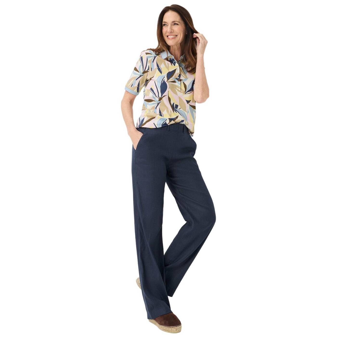 Mit sommerlicher leichtigkeit und eleganter note präsentiert sich die marlenehose im style pam flared von raphaela. diese damenhose zeichnet sich durch einen slim fit mit schmalem oberschenkel aus, der charmant in eine weite silhouette übergeht und von einer hohen leibhöhe perfektioniert wird. dezent integrierte leistengesäßtaschen und klassische französische taschen unterstreichen die klare linie. die edle und smarte optik wird durch einen komfortablen dehnbund mit angedeutetem verschluss sowie die farbgebung in aktuellen colorits unterstrichen. kreieren sie mühelos stilvolle looks, indem sie die hose zu lässigen blusen oder feinen strickoberteilen kombinieren. ein wahres highlight ist der hochwertige leinenmix, der natürliche kühle mit modernem tragekomfort verbindet. die linen stretch-qualität steht hierbei für außergewöhnliche bewegungsfreiheit und ein besonders angenehmes hautgefühl, welches durch die atmungsaktiven eigenschaften von leinen und baumwolle sowie den weichen griff der viskose unterstützt wird. der beigemischte elasthananteil garantiert zudem eine verlässliche formstabilität. ein absolutes wohlfühlteil für den sommer.