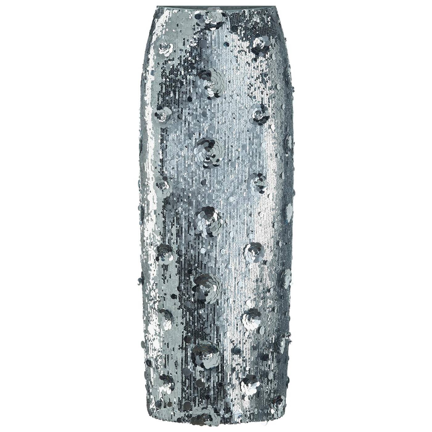 Glamourös, feminin und ein echter Blickfang – der Maxi- Rock mit Pailletten zieht alle Blicke auf sich. Die filigranen, reinsilbernen Blütenstickereien verleihen dem Rock eine funkelnde Leichtigkeit, während der fließende Schnitt für Bewegungsfreiheit sorgt. Ein elegantes Piece, das jedem Outfit das gewisse Etwas verleiht.