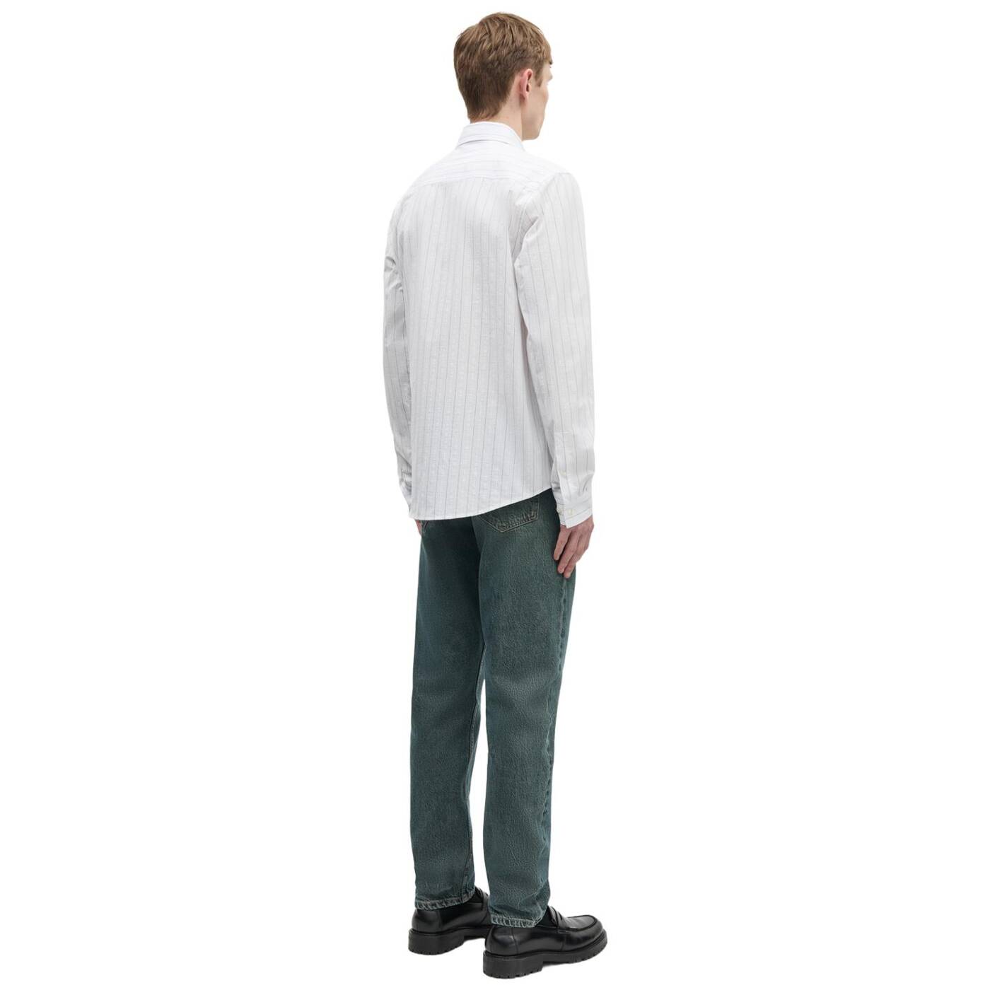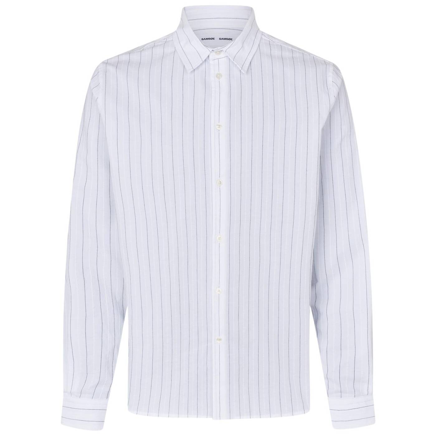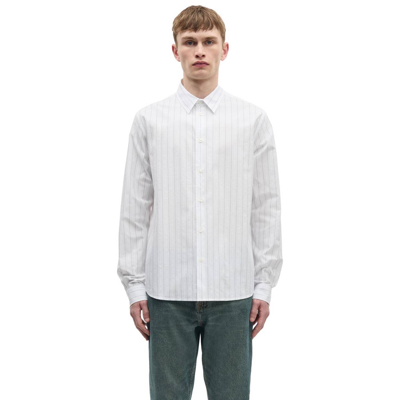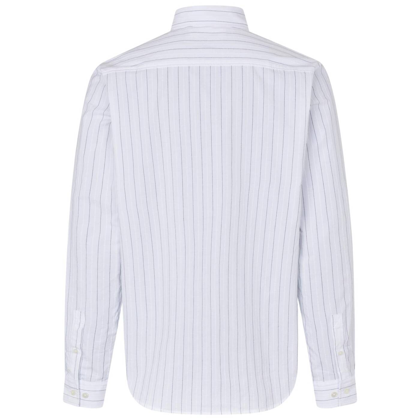 Langärmliges, gestreiftes Hemd mit normaler Passform. Knopfverschluss auf der Vorderseite und Knöpfe an den Manschetten. Passe am Nacken mit Naht. Hauptmaterial gefertigt aus einem Bio-Baumwoll-Gemisch.