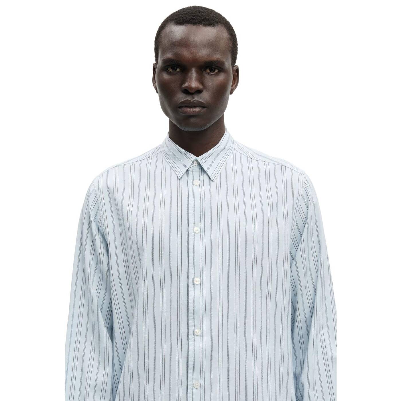 Langärmeliges Hemd mit normaler Passform. Knopfverschluss auf der Vorderseite und Knöpfe an den Manschetten. Passennaht am Nacken. Hauptmaterial gefertigt aus einem Gemisch aus Bio-Baumwolle und CIRCULOSE®-Viskose.